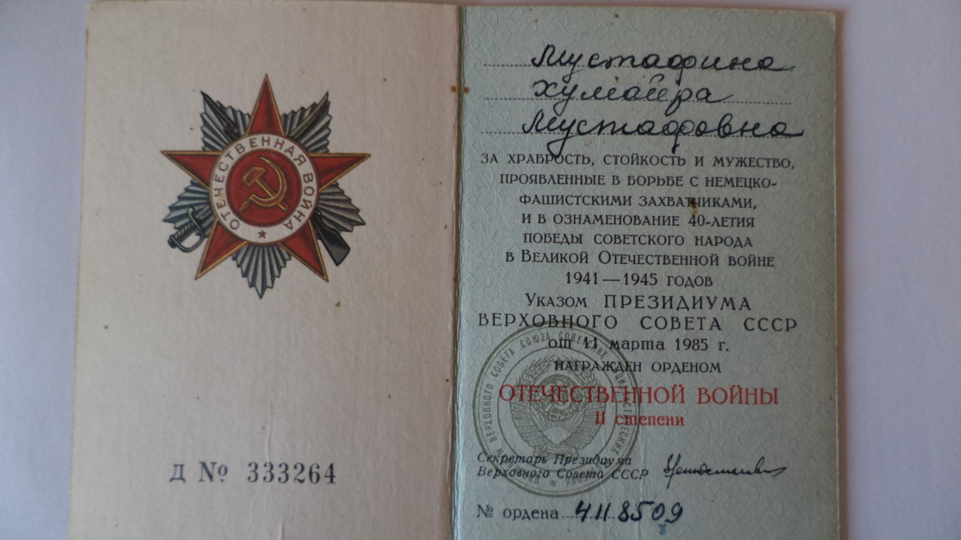 Мустафина Хумайра Мустафиновна родилась 1 февраля 1923 года с. Чалпы. Служила в зенитной артиллерии противовоздушной обороны II Украинского фронта. Разведчица, телефонистка, радистка. Свой военный путь начала в 1943 году с Москвы, далее освобождала Тулу – Полтаву – Украину – Польшу – Чехословакию. Встретила Победу на Германской границе – г. Гомен.