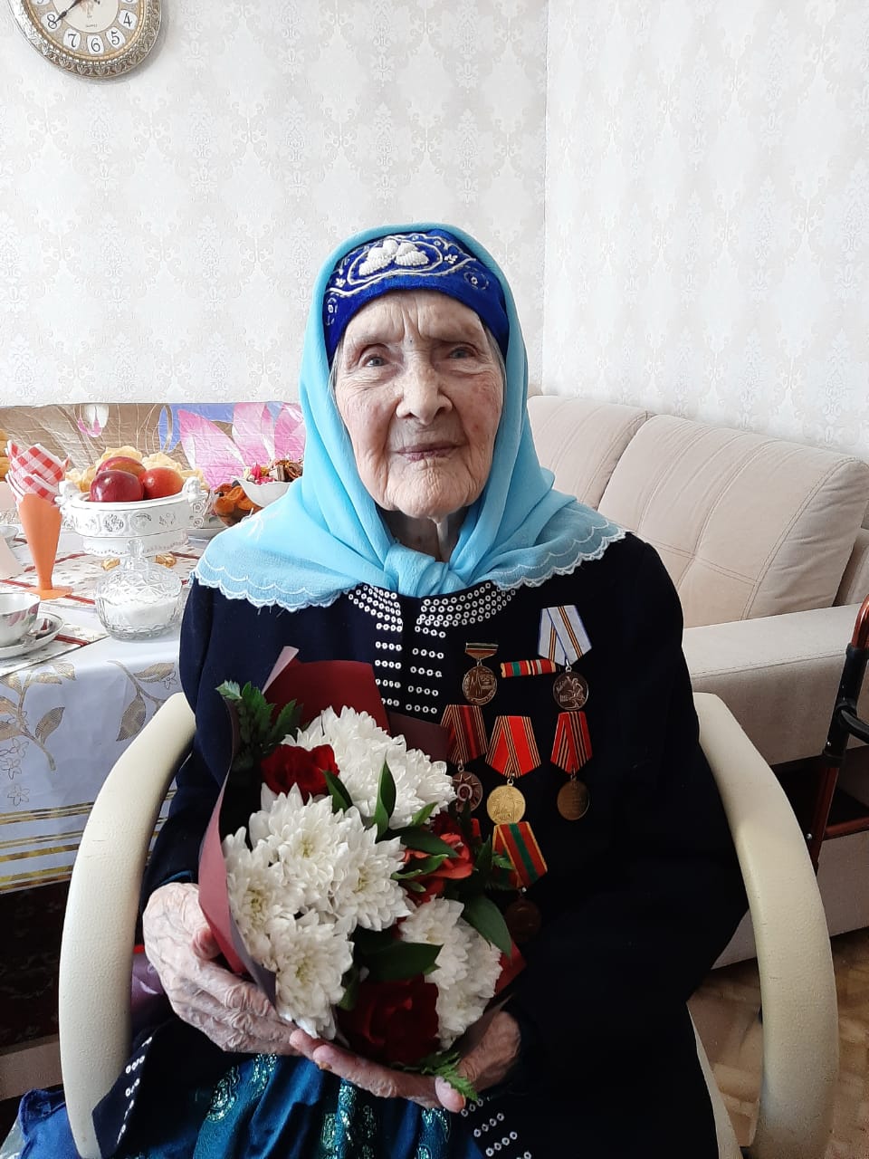 От имени Президента Российской Федерации и Мэра города Набережные Челны Камар Гайзулловне вручена юбилейная медаль «75 лет Победы в Великой Отечественной войне 1941—1945 гг.» и памятный подарок.