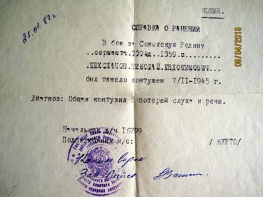 И снова в нескольких шагах взорвался снаряд. Его контузило. Он оказался глух и нем, полгода провел в госпитале. В феврале 1945 года снова отправили на фронт, однако в этот раз ему посчастливилось – ранений больше не было.