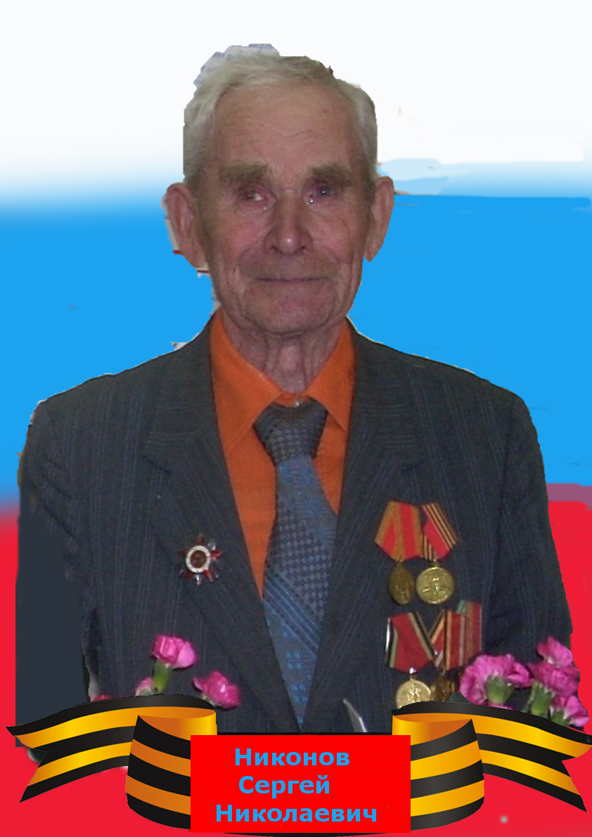 Никонов Сергей Николаевич родился 6 сентября1918 года. 22 июня 1941 года он встретил в Литве. В годы Великой Отечественной войны он был лейтенантом, служил связистом. Многое ему пришлось пережить: и страшный бой, и отступление, и контузию, и самое страшное – плен. День Победы он встретил в Германии в 1945 году. Получил много юбилейных наград и медалей.