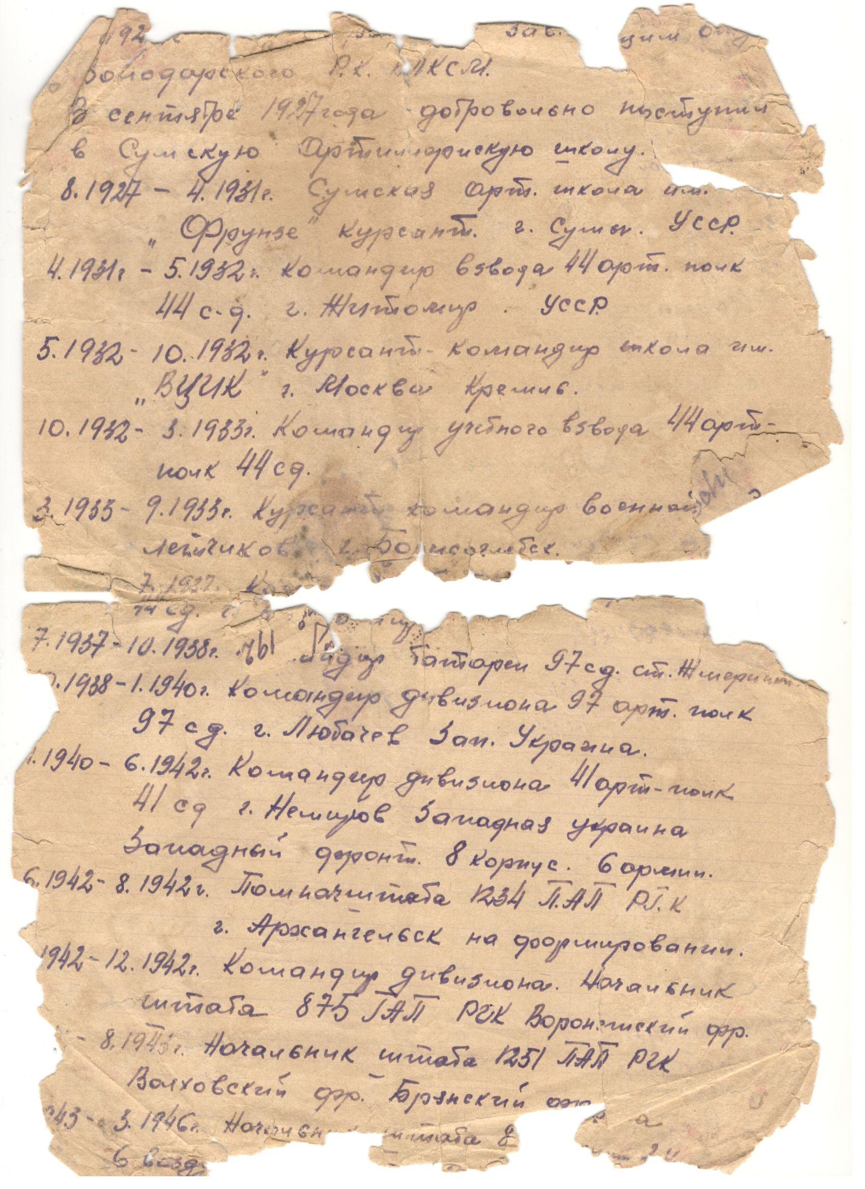 1927-1931гг. – курсант артиллерийской школы в г.Сумы.