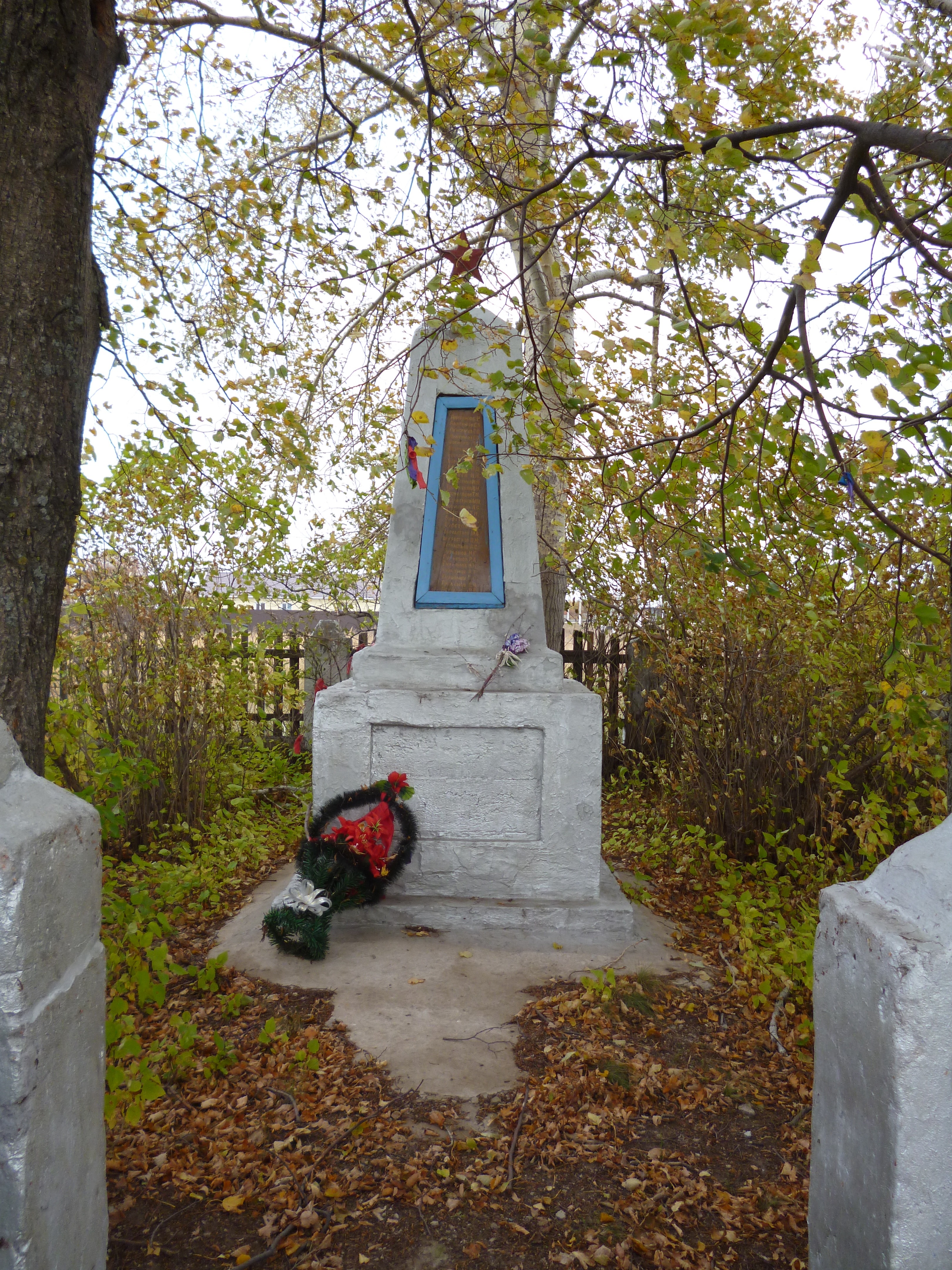 Обелиск сделан из облицовочного кирпича, обелиск высота 3 метра. Мемориальная доска из железа в деревянной рамке, на ней написаны фамилии, имена погибших воинов.