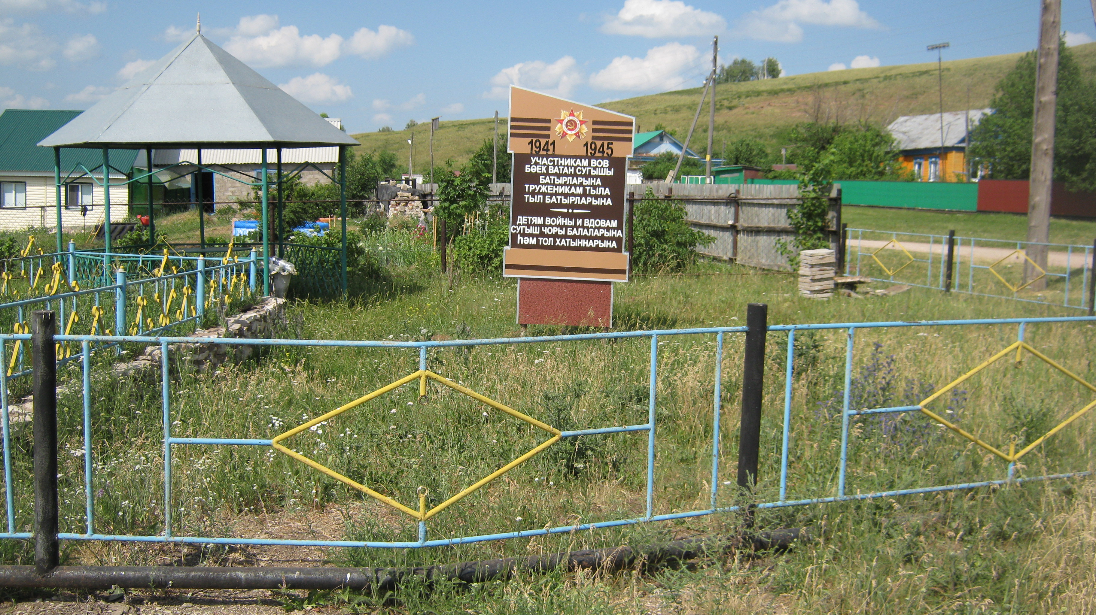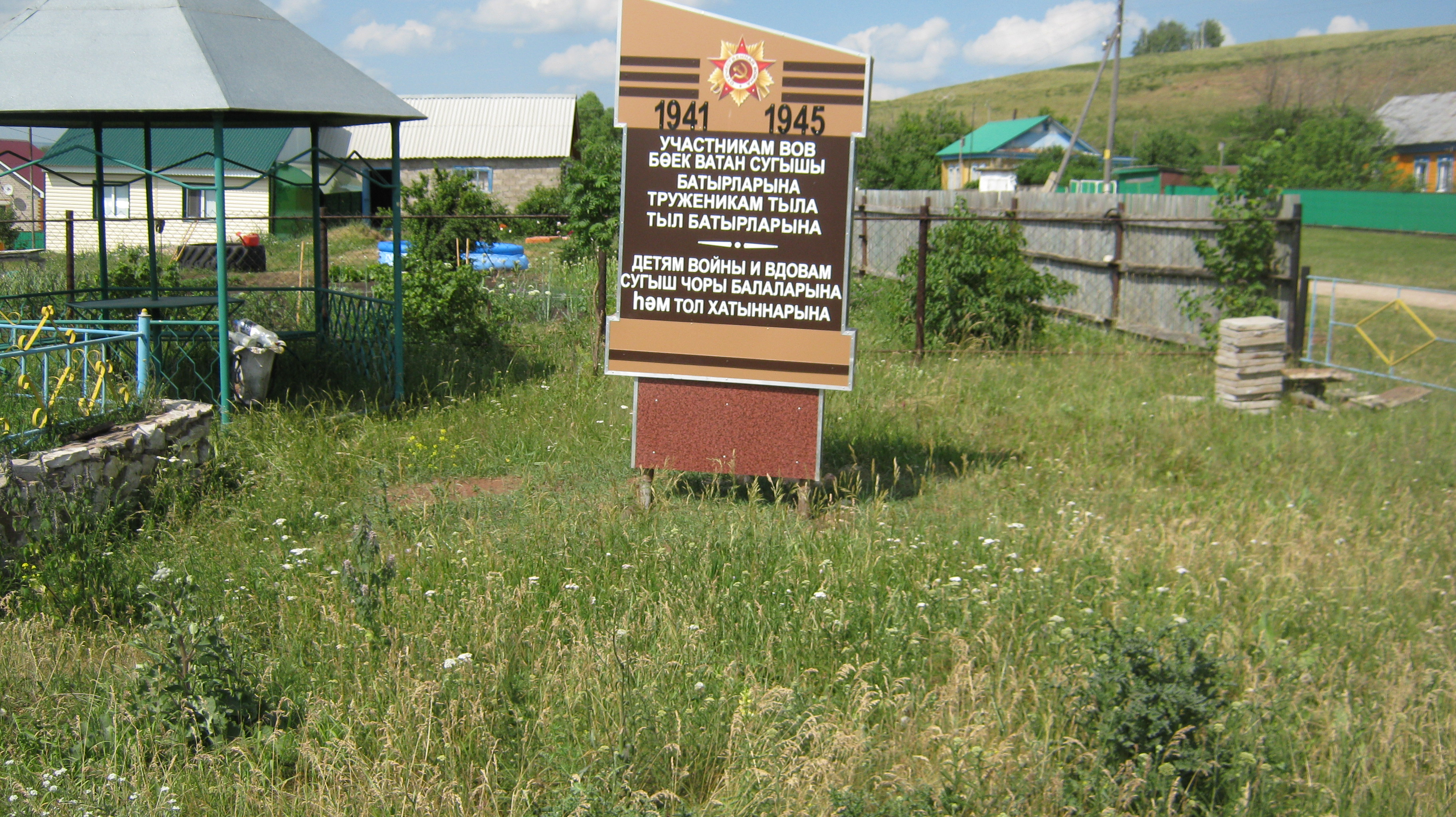 Памятник посвящен участникам Великой Отечественной войны, уроженцам села, а также труженикам тыла, детям войны и вдовам. Изготовлен из композиционного материала. В Верхней части памятника изображены орден Отечественной войны, георгиевская лента и указаны начало и окончание войны. Имеется металлическое ограждение.