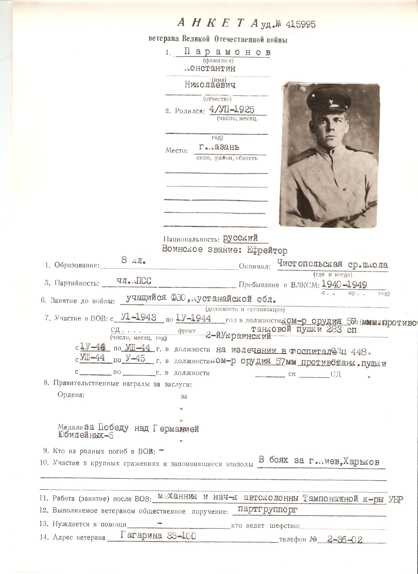 ПАРАМОНОВ КОНСТАНТИН НИКОЛАЕВИЧ