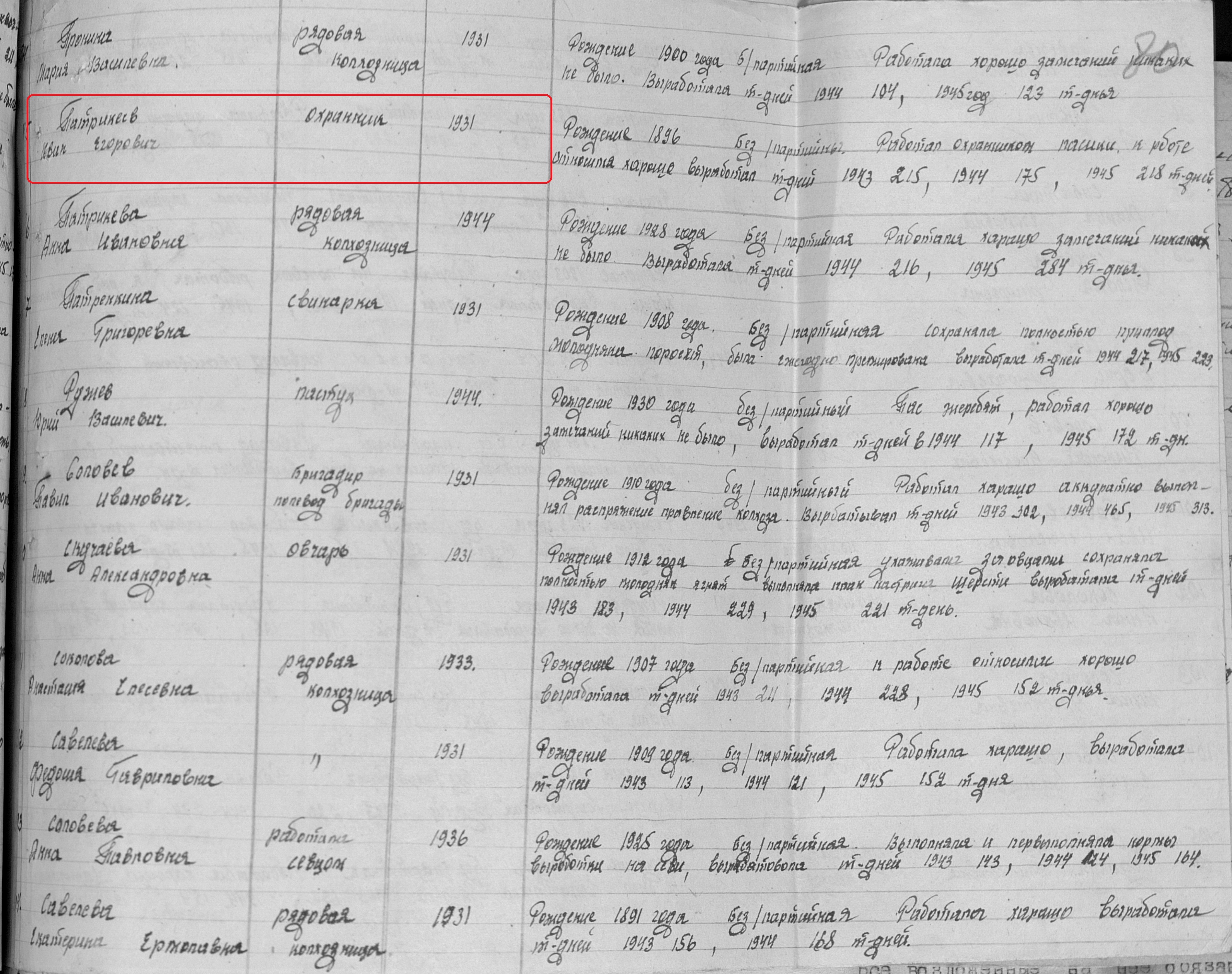 Патрикеев Иван Егорович родился в 1883 году в с.Сл.Петропавловская Казанской губернии Чистопольского уезда Новошешминской волости. В годы Великой Отечественной войны работал в колхозе «Победа» охранником. Награжден медалью "За доблестный труд в Великой Отечественной войне 1941–1945 гг." (Акт от 01. 1946г.фонд 3610, опись 2, дело №174, лист 78). Умер в 1964 году, похоронен на сельском кладбище с.Сл.Петропавловская.