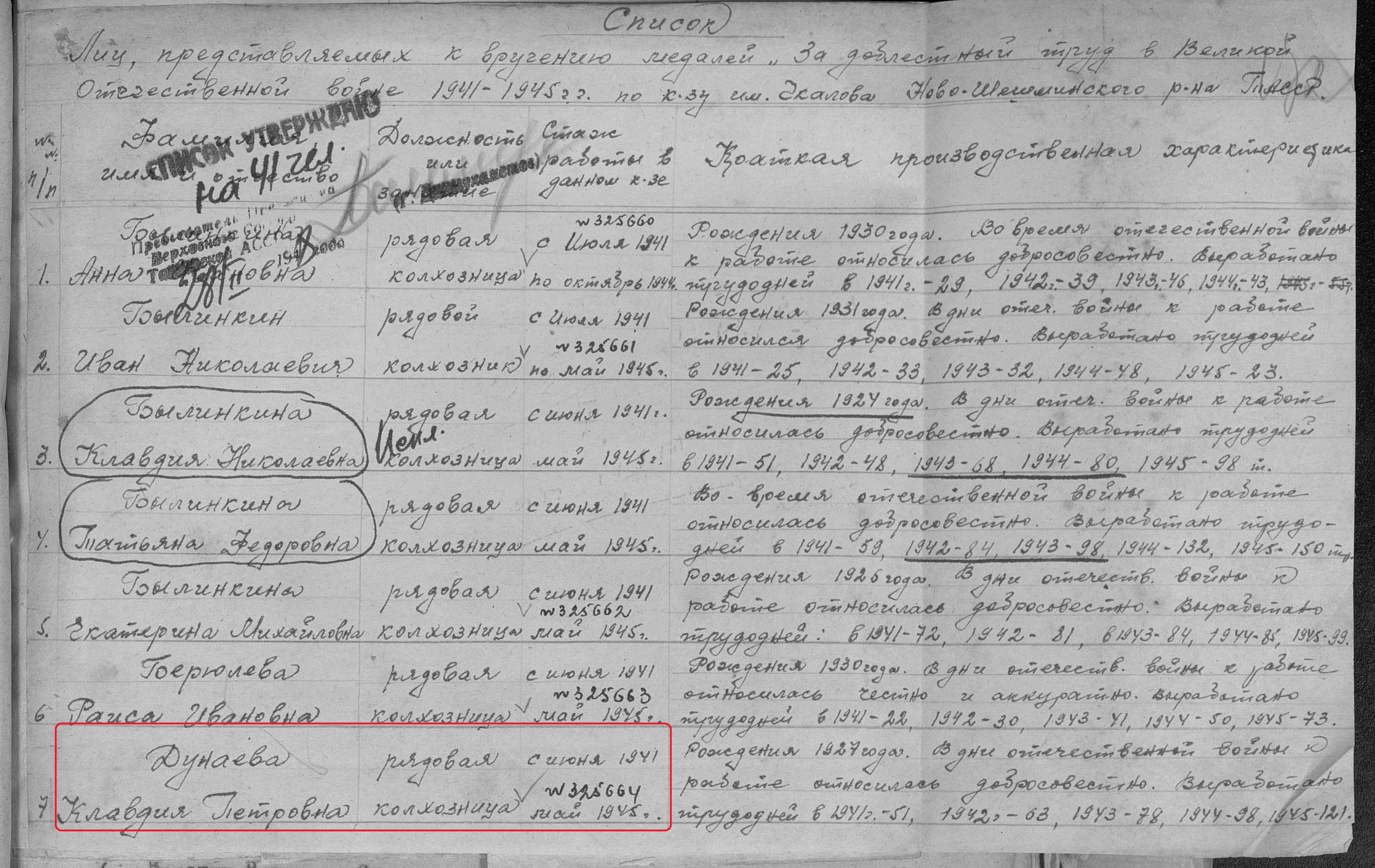 Павлухина (Дунаева) Клавдия Петровна родилась в 1927 году. Место жительства: с.Новошешминск Ново-Шешминский район ТАССР. В годы Великой Отечественной войны работала в колхозе им. Чкалова рядовой колхозницей. Награждена медалью "За доблестный труд в Великой Отечественной войне 1941–1945 гг." (Акт от 01.1946 г., фонд 3610, опись 2, дело № 470, лист 172, АК № 325664). Умерла в 2003 году, похоронена на сельском кладбище с.Новошешминск.