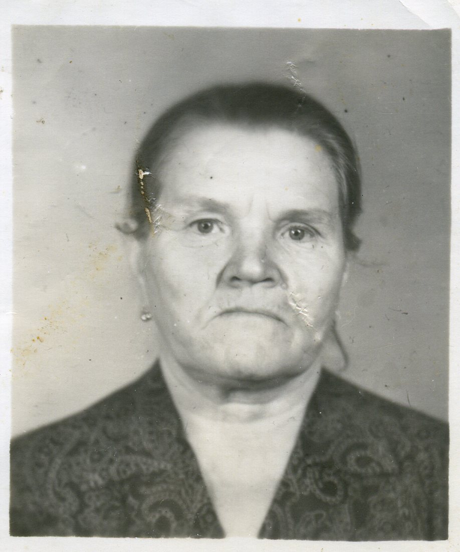 Родилась в 1918 г. в с. Мурзиха (п. Шалбы). В годы войны осталась с 4 детьми на руках, муж ушёл на фронт. Работала в колхозе "Память Ленина" телятницей. Награждена медалью "За доблестный труд в Великой Отечественной войне 1941-1945 гг.".