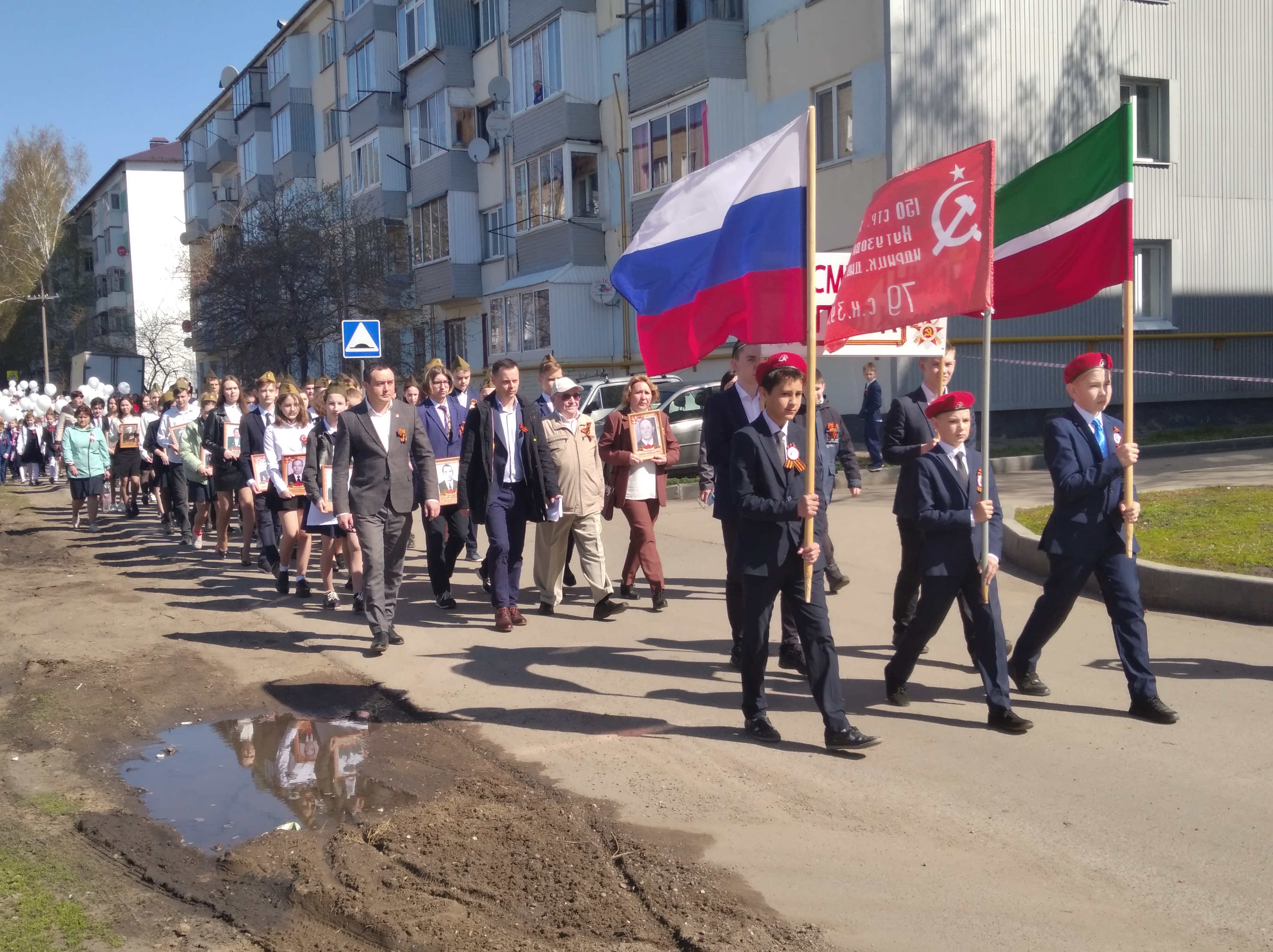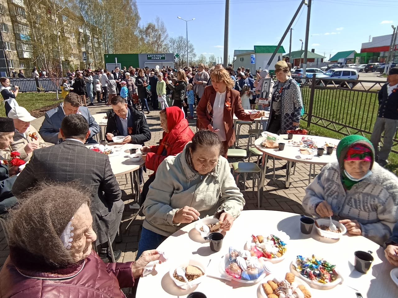 В поселке Круглое Поле, Тукаевского муниципального района Республики Татарстан, прошел митинг, посвященный 77-годовщине Победы. "Бессмертный полк" начал шествие победным маршем, объединив людей, разного возраста, разных национальностей и разных поколений. Сколько бы лет и десятилетий не прошло, люди Земли снова и снова будут возвращаться к Великой Победе, ознаменовавшей торжество разума над безумием, жизни над смертью. В эти дни торжественной памяти наш долг еще раз низко поклониться героям, павшим в боях за Родину, героям, которые живут в мирное время. Слова поздравлений в этот день прозвучали от главы Круглопольского сельского поселения Эльмиры Робертовны Низамиевой, Председателя совета ветеранов поселка Круглое Поле Самата Абдулловича Губайдуллина и не только. Всех павших в бою почтили минутой молчания, а после выпустили в небо белые воздушные шары. Ветераны, труженики тыла, жители поселка и гости возложили цветы, как дань уважения и почтения всем погибшим в Великую Отечественную войну. Атмосферу праздника создавала праздничная концертная программа и инсталляции, а так же фотозона созданная Круглопольской сельской библиотекой. После завершения митинга всех ждала полевая кухня.