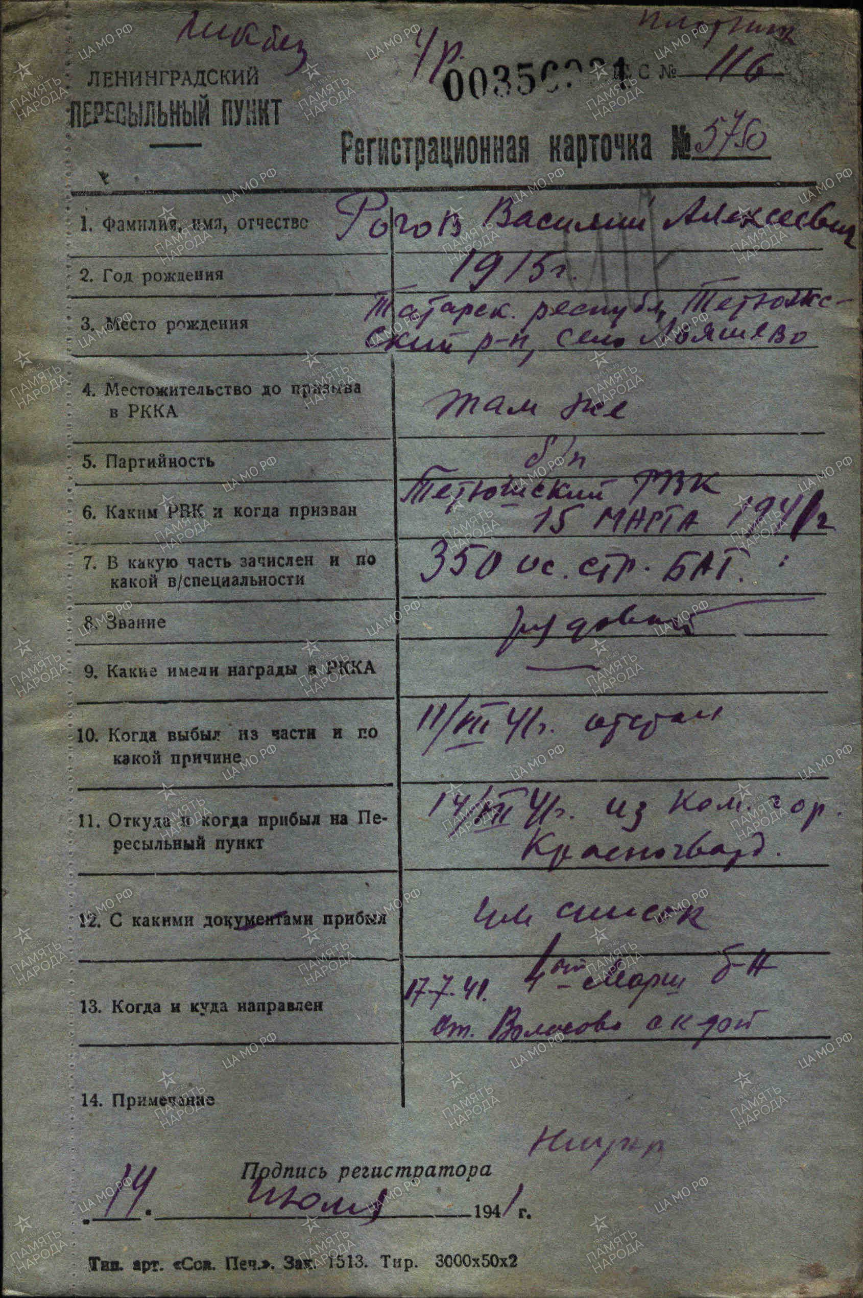 РОГОВ ВАСИЛИЙ АЛЕКСЕЕВИЧ (12.04.1915- 09.1941)