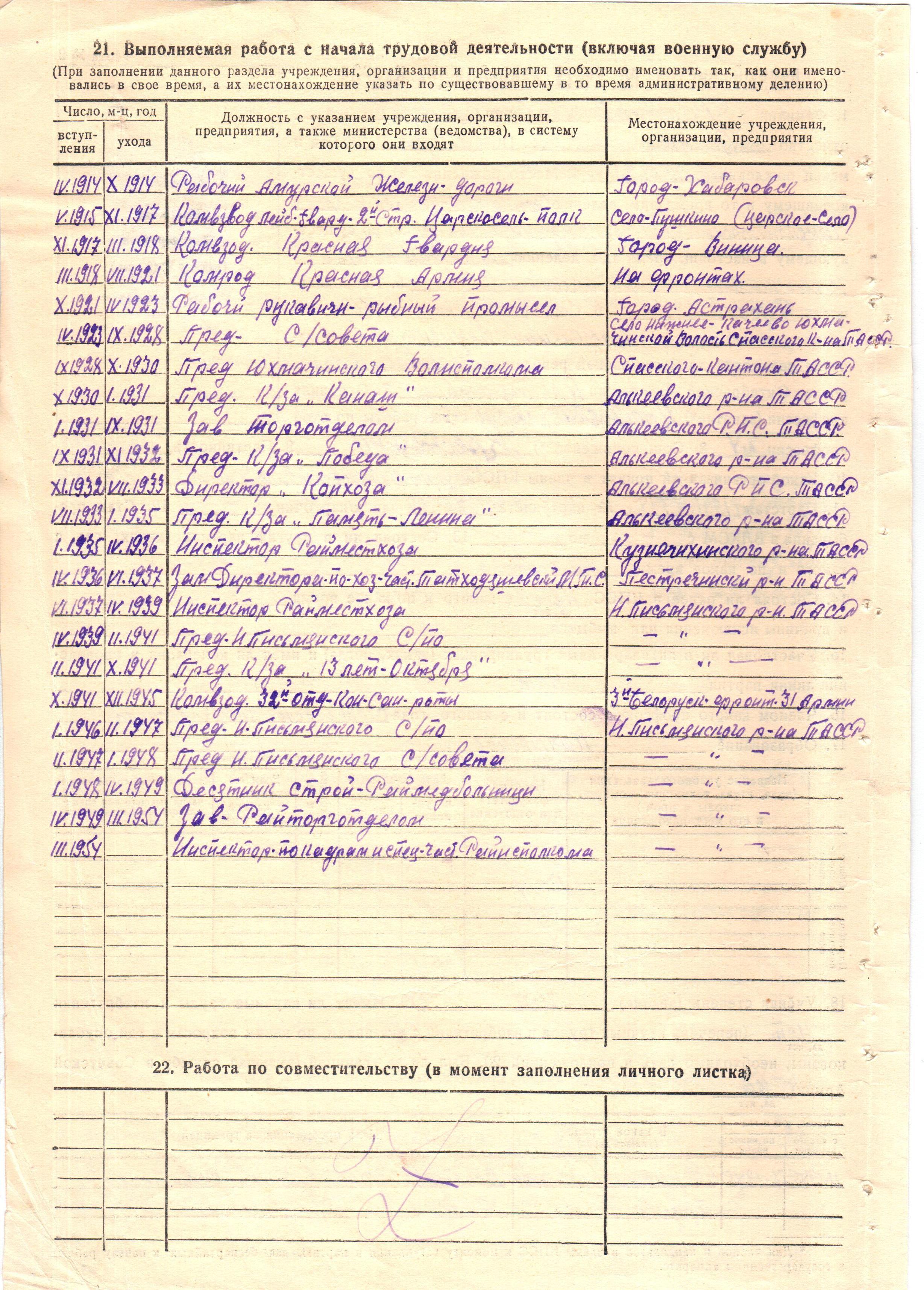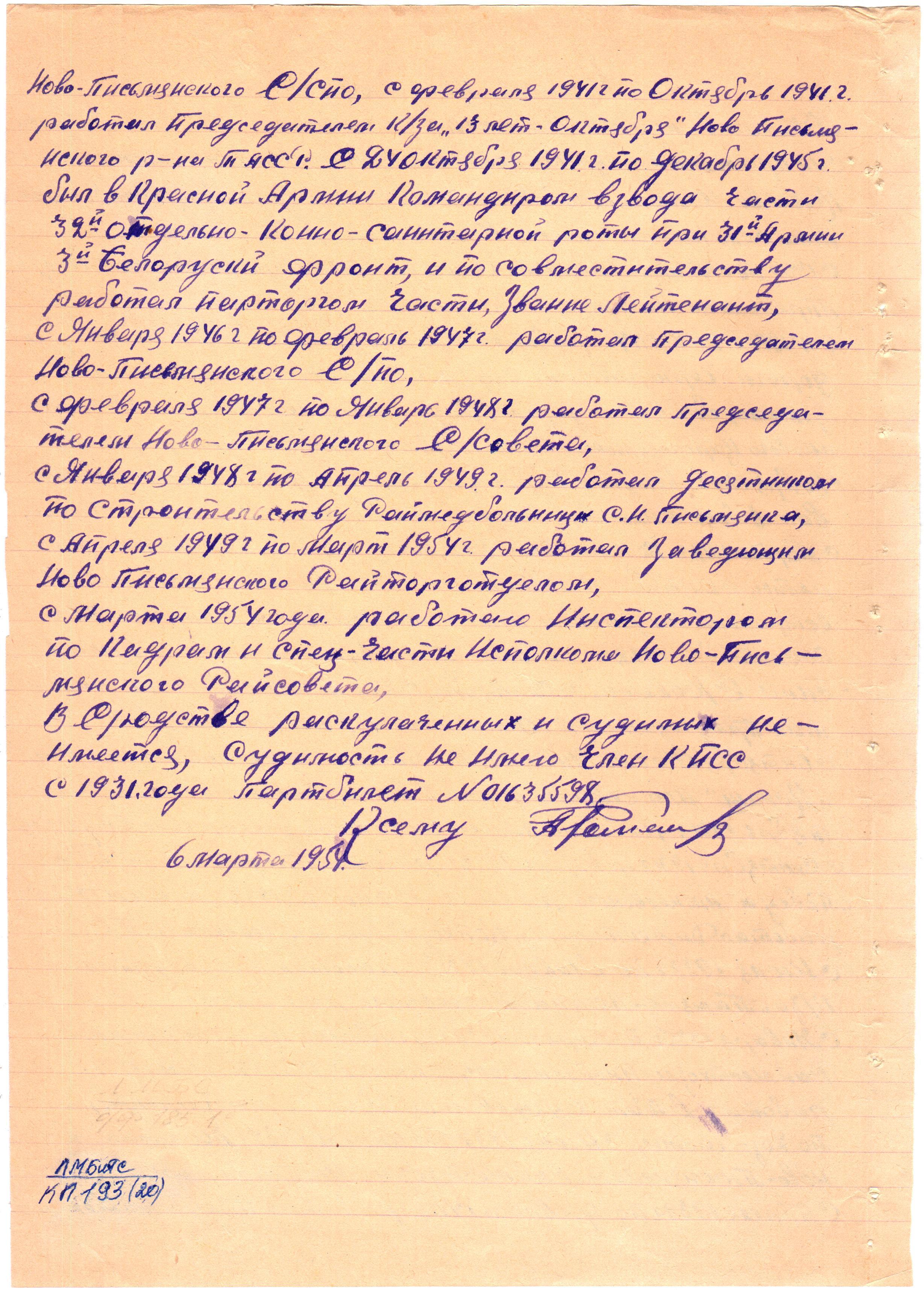 После войны работал инспектором кадров Ново- Письмянского райсовета. Жил в с. Новая Письмянка.