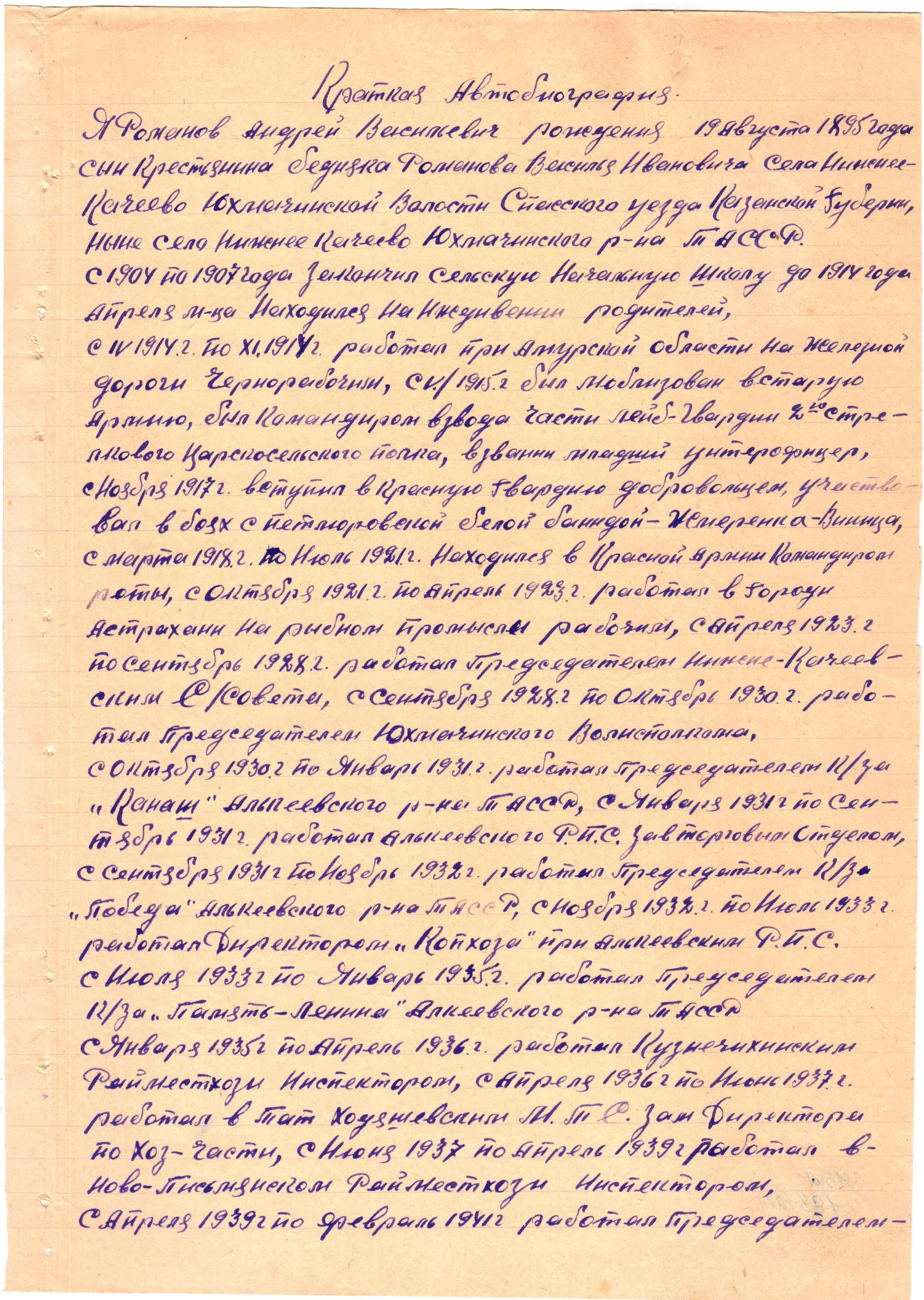Родился 19.08.1895г. с Нижнее Качеево Юхмачинского района ТАССР. Участник Гражданской войны.