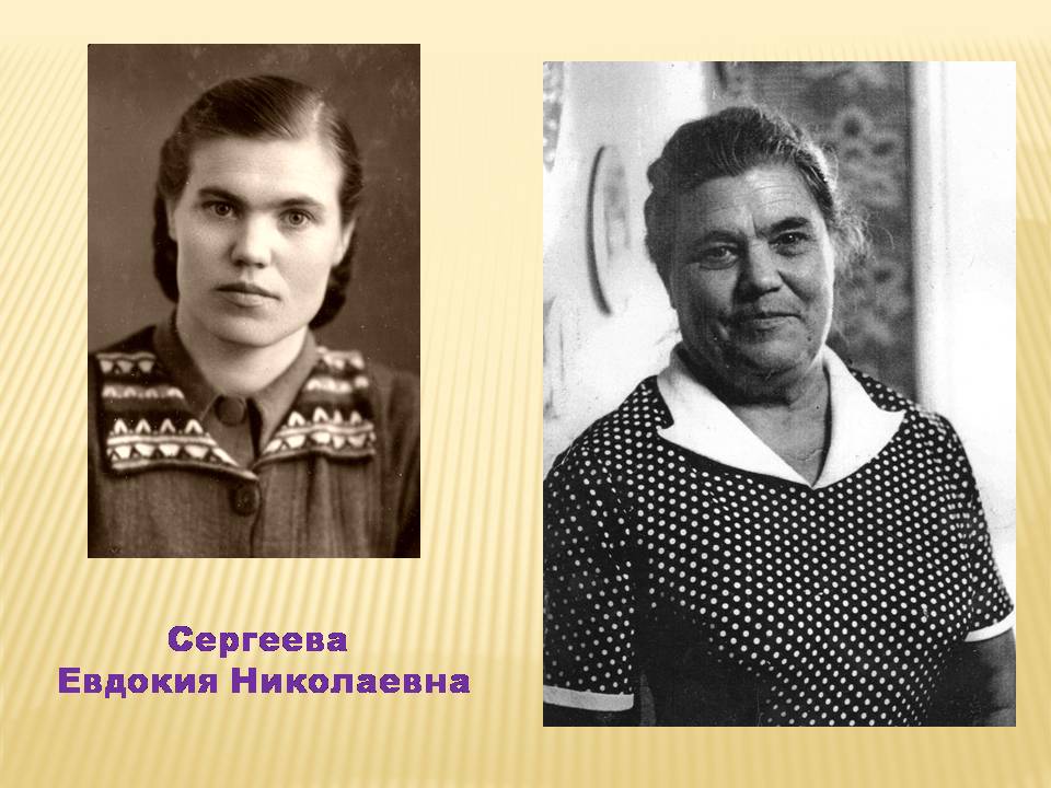 Когда началась война Евдокия Николаевна была еще совсем девчонкой. Но очень любила детей, поэтому не могла спокойно смотреть на то, как в поселке появляется все больше и больше сирот. Эти любовь и сострадание привели ее в детский сад. Все военные годы она проработала старшим воспитателем в детсаде.
