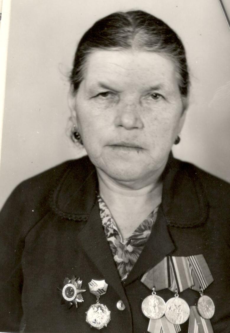 Родилась в 1924 г. в д.Бизяки. Мобилизована в 1943 году Бондюжским райвоенкоматом. Рядовая, 392 запасной стрелковый полк, 2 стрелковый батальон, Ленинградский, Волховский фронт. 8 военно-дорожное управление. Была контужена. Демобилизована в 1945 г. Работала в колхозе, отделе рабочего снабжения химзавода имени Карпова.