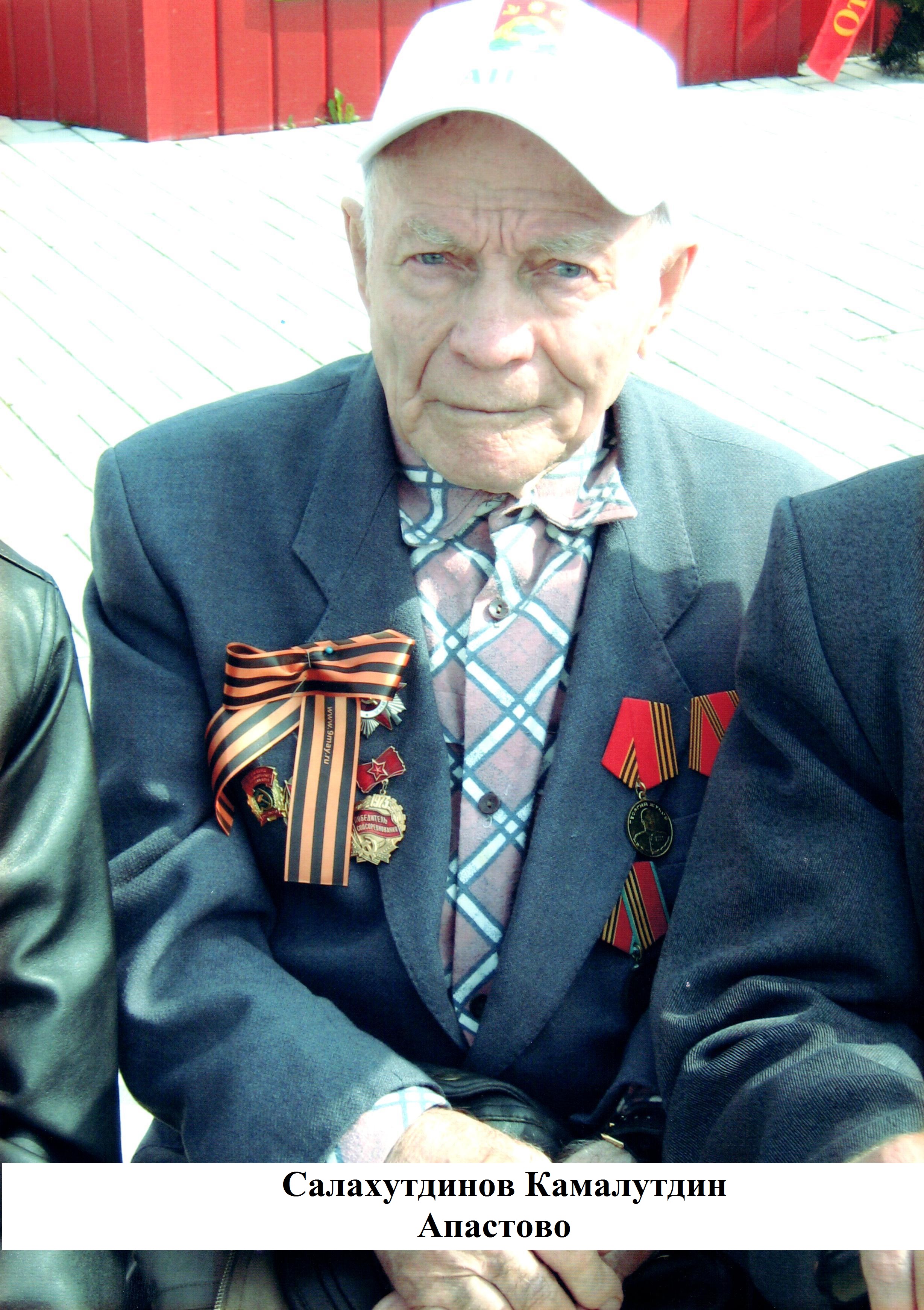 Салахутдинов Камалутдин родился 31 января 1925 года в деревне Два Поля Арташ Сабинского района ТАССР. Когда ему было 15 лет, они с семьей поехали в город Выборг Ленинградской области. Началась война. Шестнадцатилетний Камалутдин узнал, что такое голод, холод, потеря близких. Как раз в это время началась блокада Ленинграда. От голода умерла его мать. Камалутдин с сестрой остались совсем одни. Они возвратились обратно в свою деревню. В 1942 году молодой Камалутдин уходит добровольцем в армию, его определяют в истребительский батальон. Он активно участвует в битве под Москвой. Из всего батальона их остается только трое. С 1942 по 1944 год Камалутдин служит зенитчиком во время обороны Москвы. Он получает Красноармейскую книжку 1 января 1943 года. В 1944 году судьба забрасывает его на Дальний восток. Но через некоторое время он возвращается в Москву. После окончания войны Камалутдин служит еще 5 лет в армии.