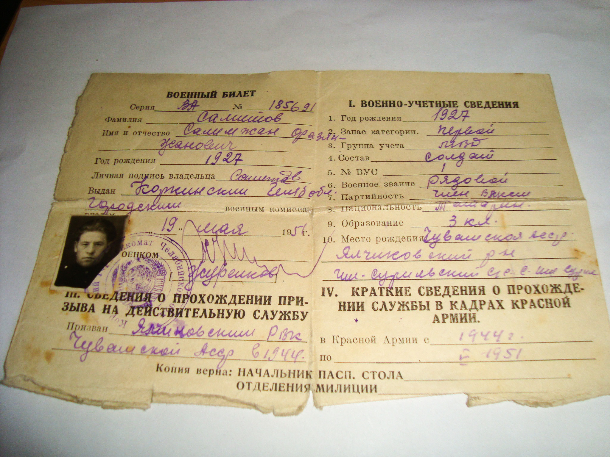 Самитов Салимзян Фазылзянович родился 21 января 1927 года в деревне Сорыле Яльчикского района Чувашии. Образование 4 класса. До того, как призвали в Армию он работал в родном колхозе.
