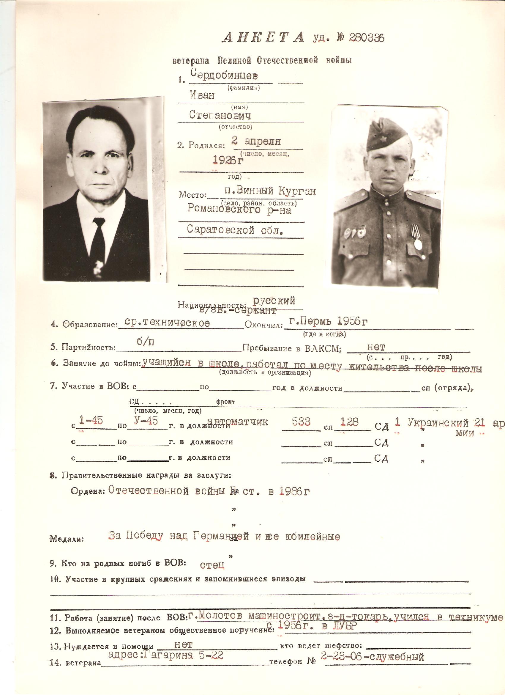 СЕРДОБИНЦЕВ ИВАН СТЕПАНОВИЧ