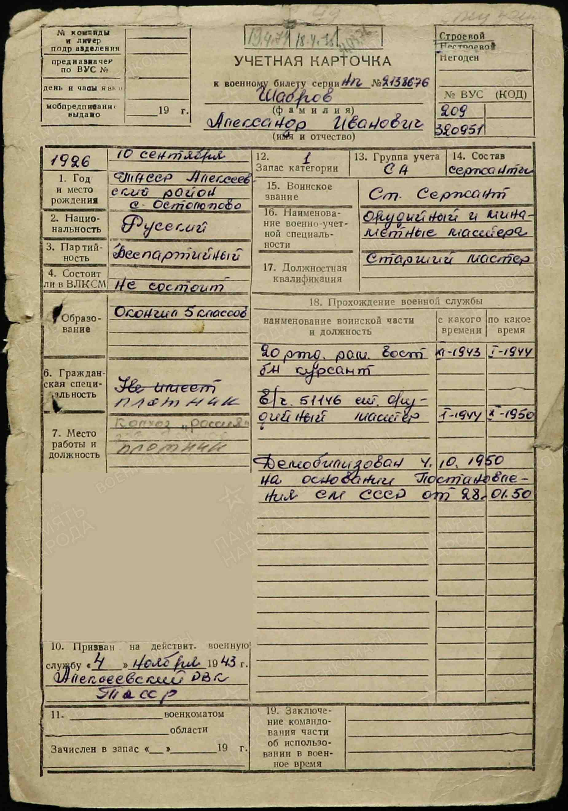 ШАБРОВ АЛЕКСАНДР ИВАНОВИЧ 1926