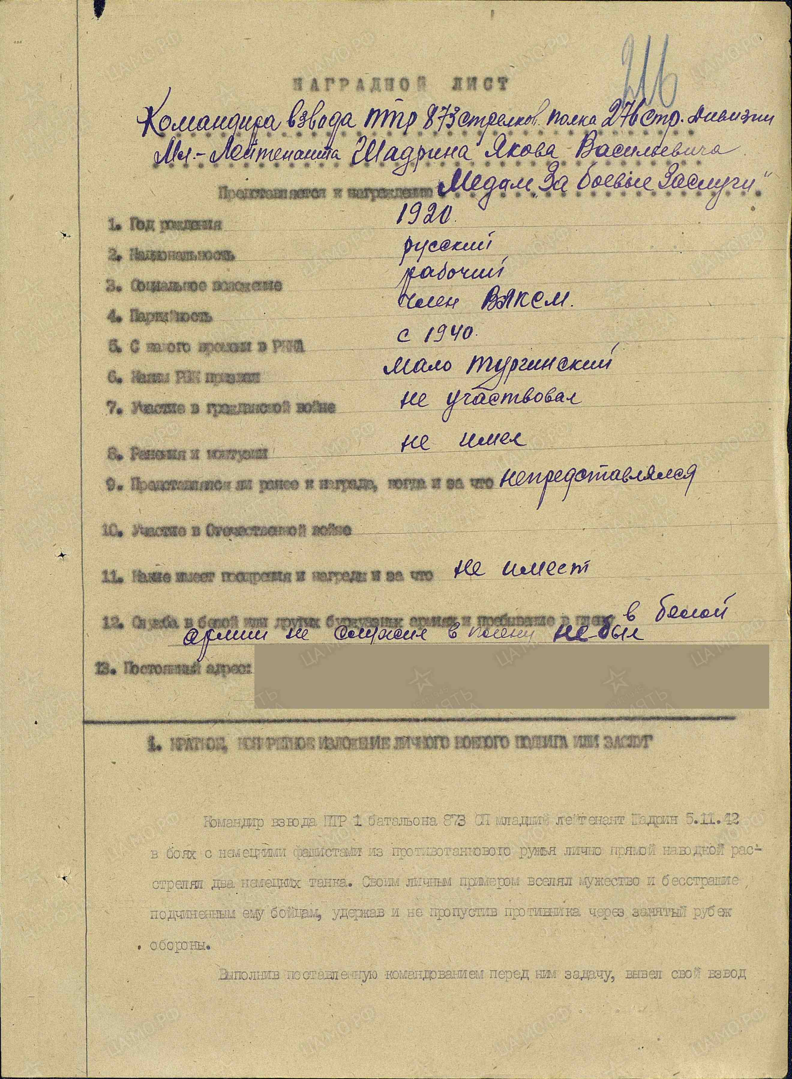 ШАДРИН ЯКОВ ВАСИЛЬЕВИЧ