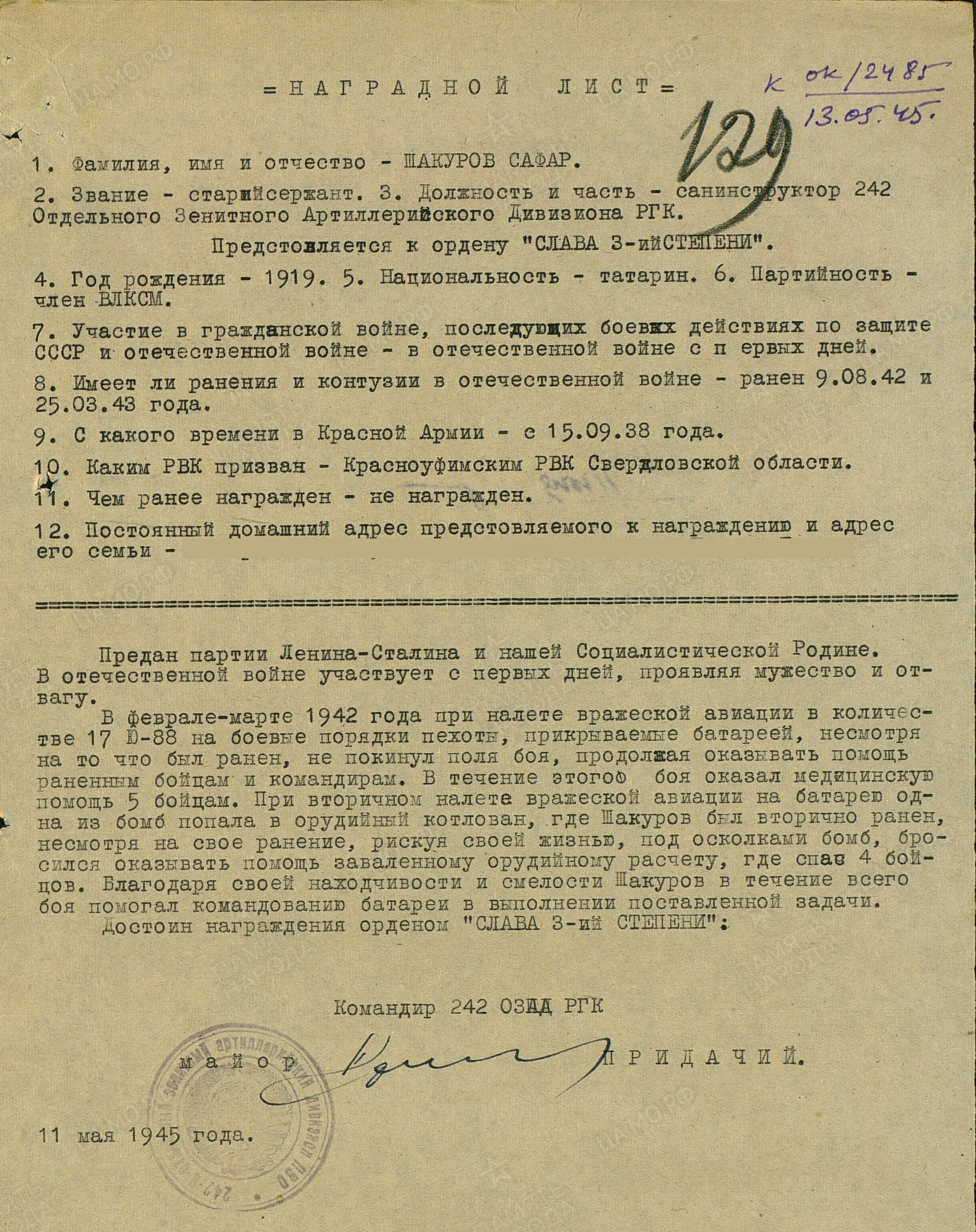 ШАКУРОВ САФАРГАЛИ ГАЛИАКБЕРОВИЧ