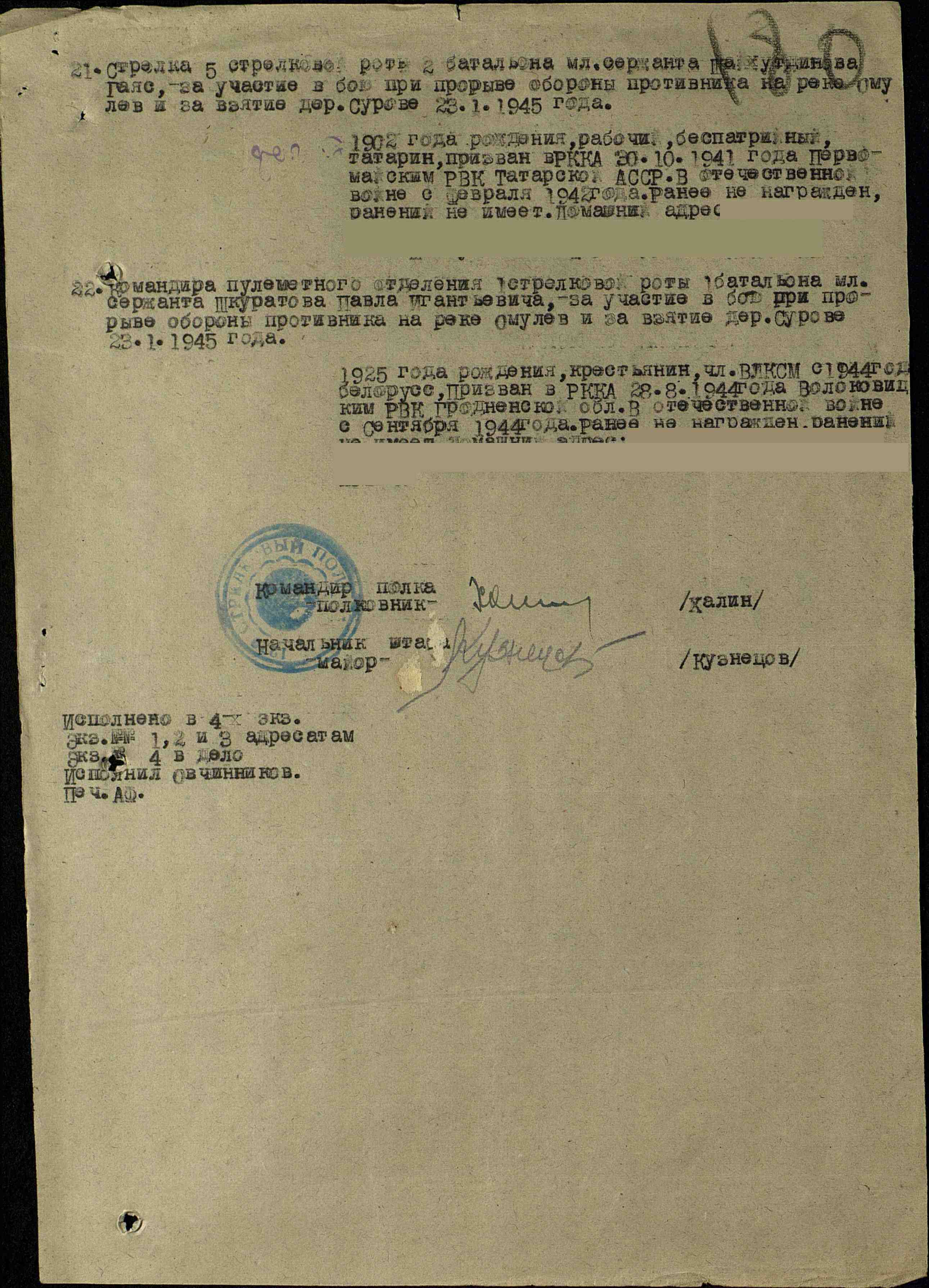 Шайхутдинов Гаяз Шайхетдинович 1902 года рождения. Родился в с. Нижняя Чегодай. До войны работал в колхозе. Призван был Первомайским (Черемшанским) РВК. Военная специальность- младший сержант 385 стрелковой дивизии. Погиб 30.01.1945 г. Был захоронен на территории Польша. Место гибели - это теперь г.Бискупец Варминьско-Мазурского воеводства в Польше.