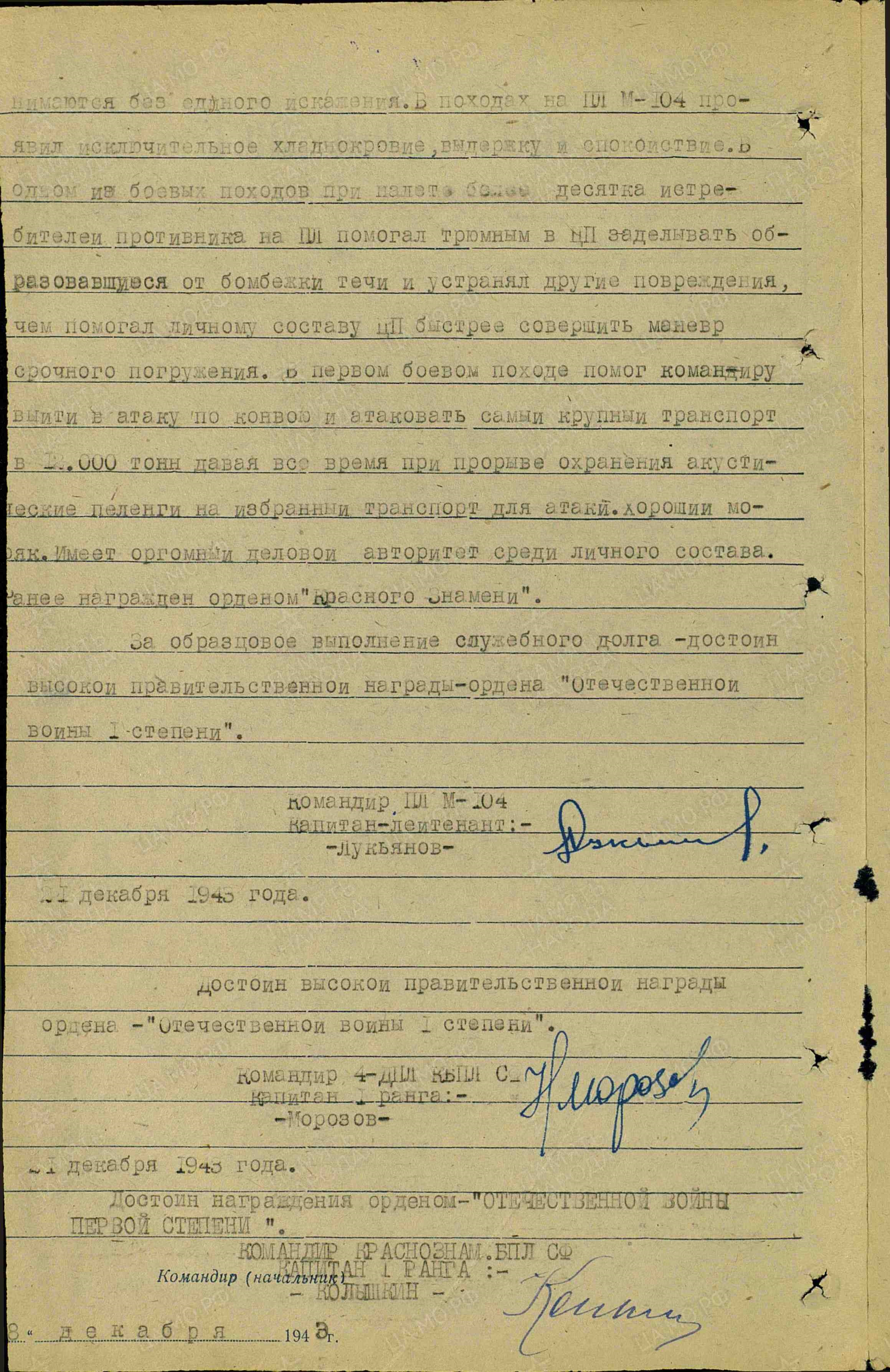 –Торпедная атака! – донесся из переговорной трубы голос командира лодки капитан-лейтенанта Н. Г. Столбова, которого отлично знал Лукьянов.