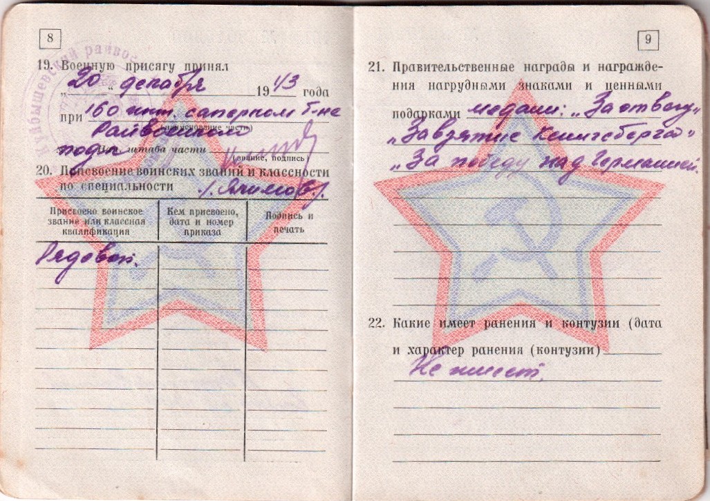 Награжден орденом Отечественной войны 2-степени (1985г.), медалью «За Отвагу» (1945г.), медалью «За взятие Кёнигсберга», медалью «За победу над Германией в Великой Отечественной войне 1941-1945г.г.» и другими медалями.