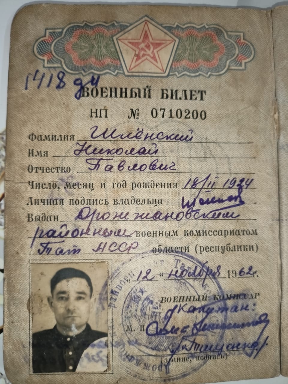 Николай Павлович родился в деревне Хайбулдино Дрожжановского района 16 февраля 1924 года.. На войну был мобилизован Дрожжановским РВК 20 августа 1942 года.