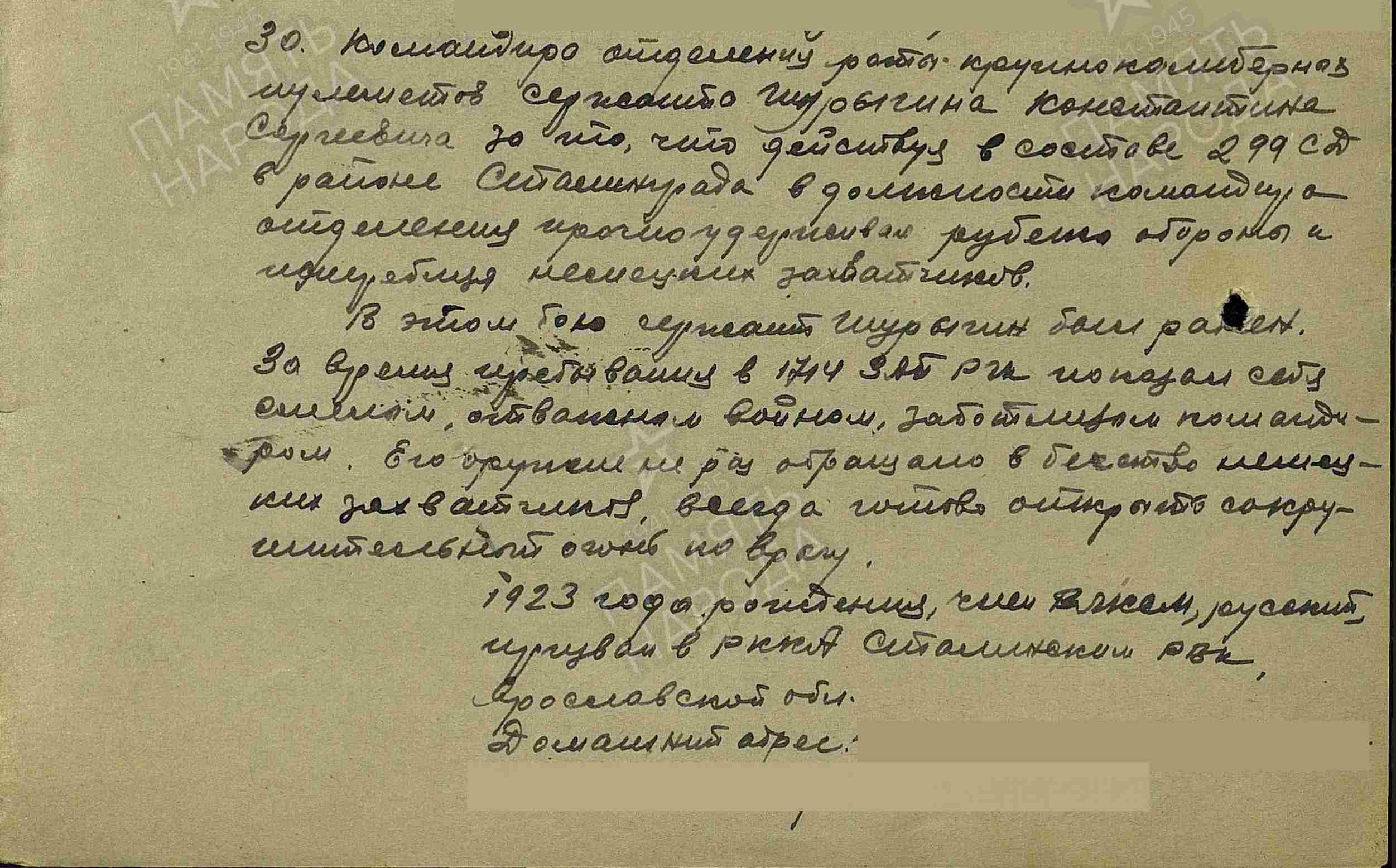 ШУРЫГИН Константин Сергеевич, 1923, с. Билярск. Мобилизован Сталинским РВК г. Ярославль в 1942. Сержант, ком. отделения 299 СД 66 А Сталинградского фронта. В 1944 – ком. отделения крупнокалиберных пулемётов 1714 ЗенАП РГК 1 ПрибалтФ. Награждён медалями "За оборону Сталинграда", «За боевые заслуги».