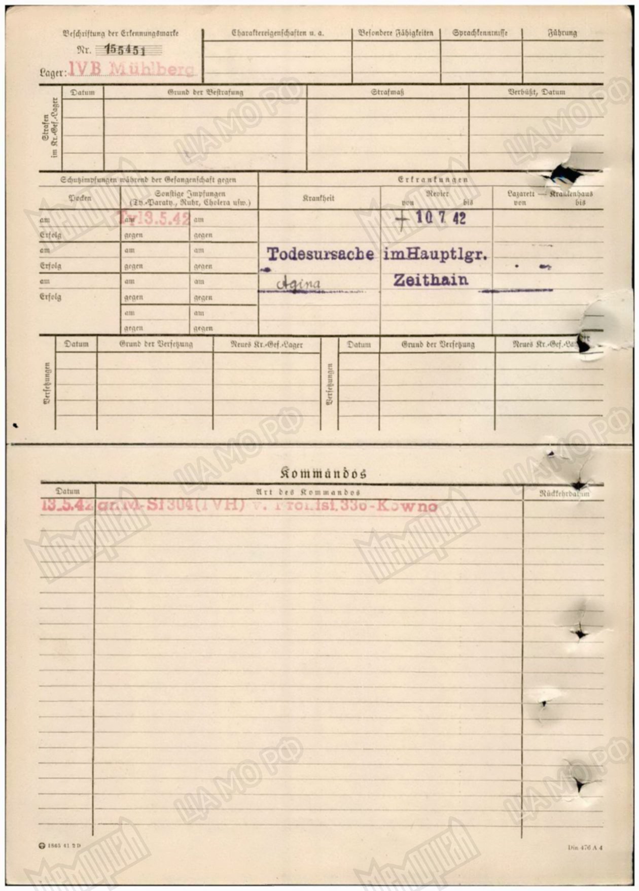 Родился в в с. Татарская Багана 12 марта 1911 г. Пленен 21 июля 1941 г. под Оршей. Содержался в шталаге IV B. Лагерный номер 155451. Красноармеец Сираев Зайны Шамсутдинович погиб в плену 10 июля 1942 г. Первичное место захоронения Цайтхайн II, могила участок 409, блок I, ряд 8.