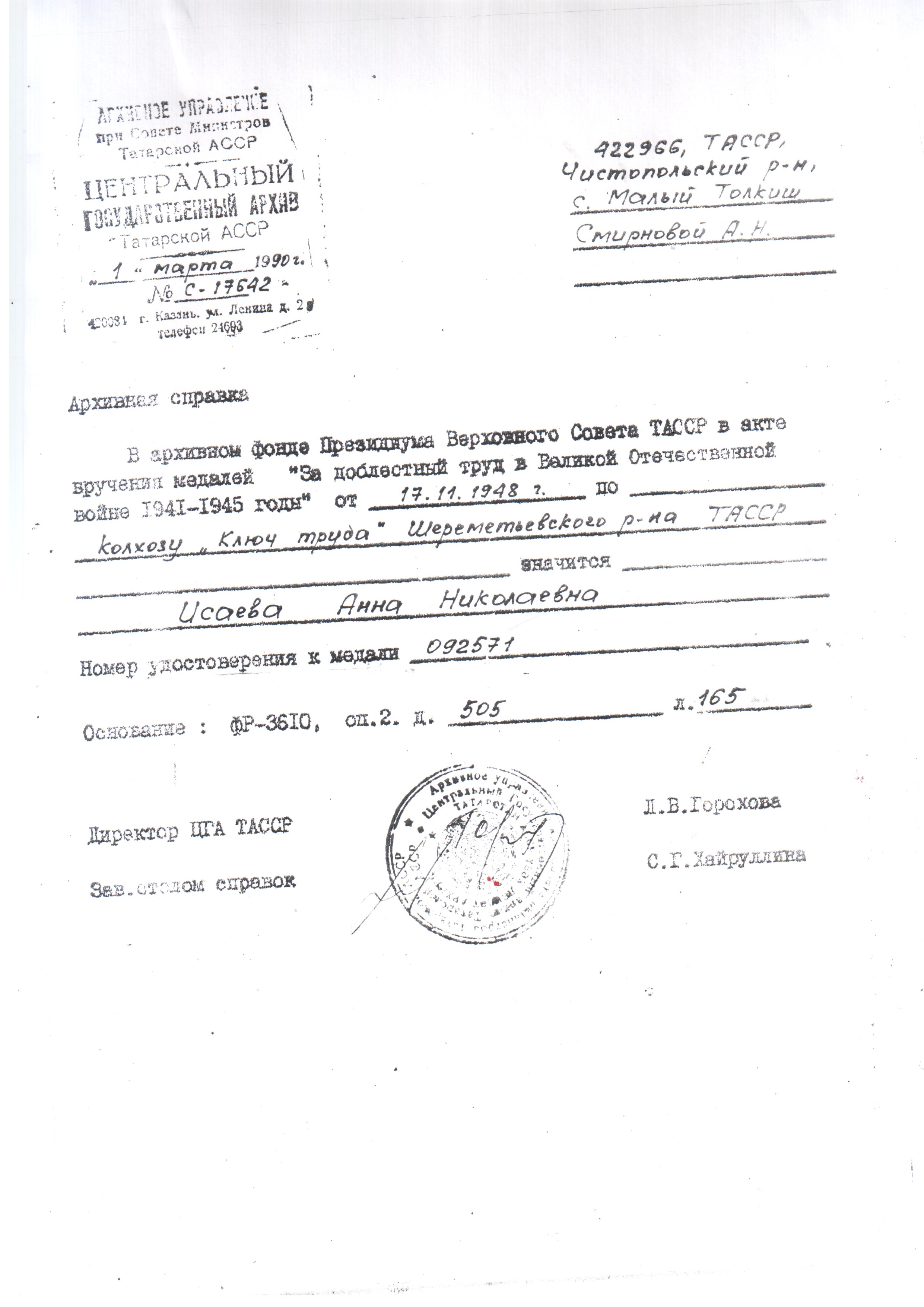 СМИРНОВА (ИСАЕВА) АННА НИКОЛАЕВНА