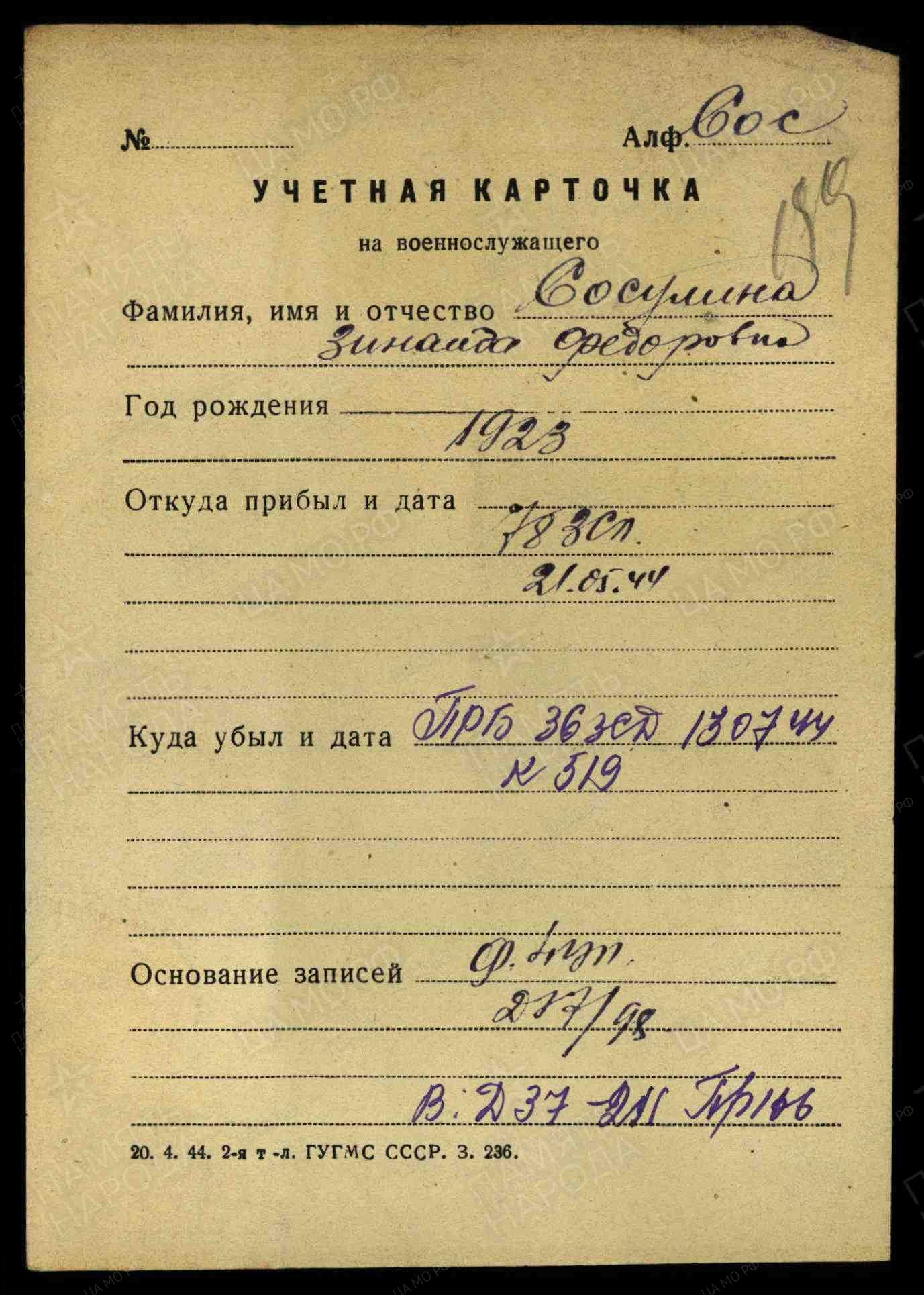 СОСУЛИНА ЗИНАИДА ФЕДОРОВНА