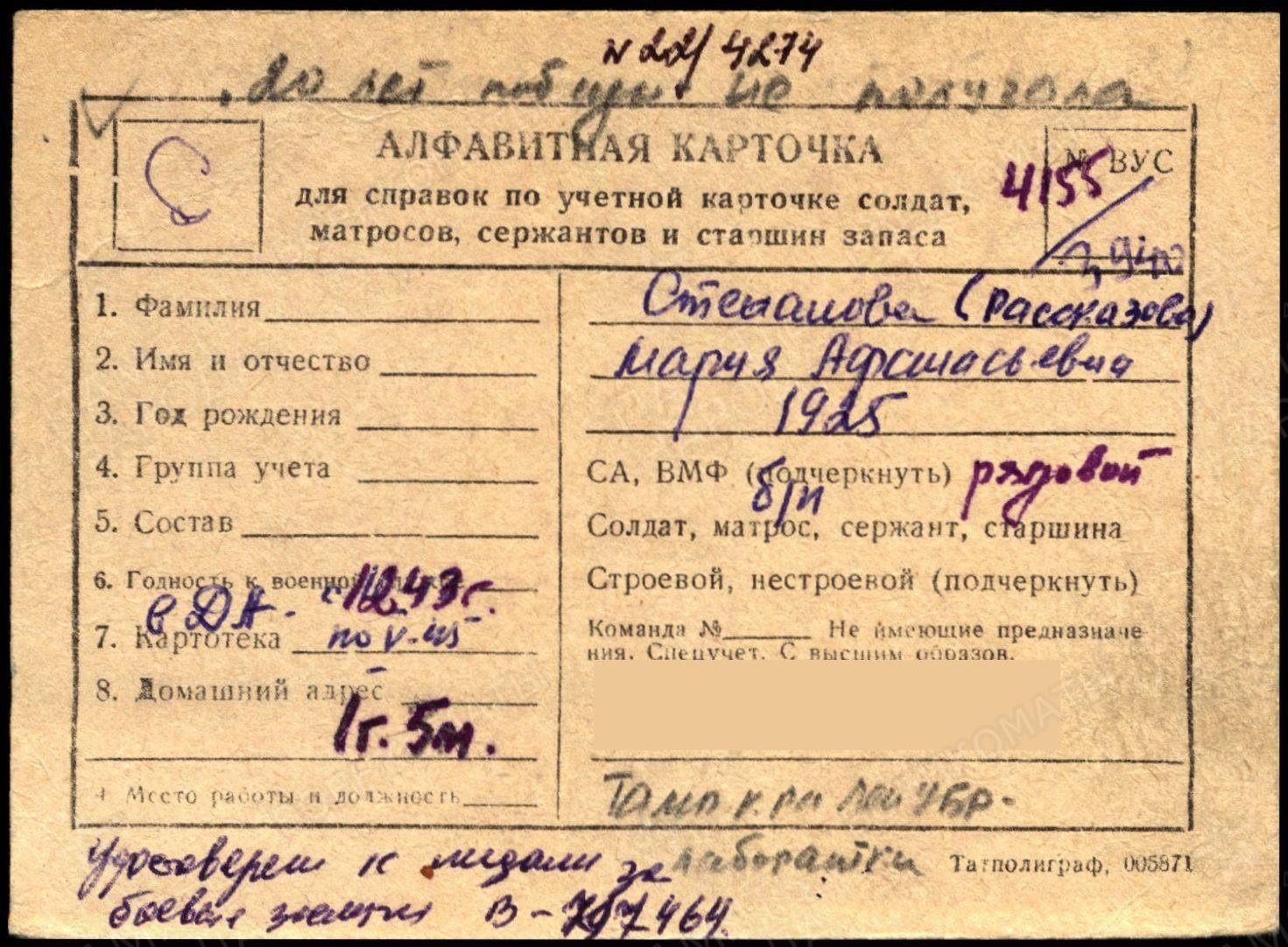 СТЕПАНОВА (РАССКАЗОВА) МАРИЯ АФАНАСЬЕВНА