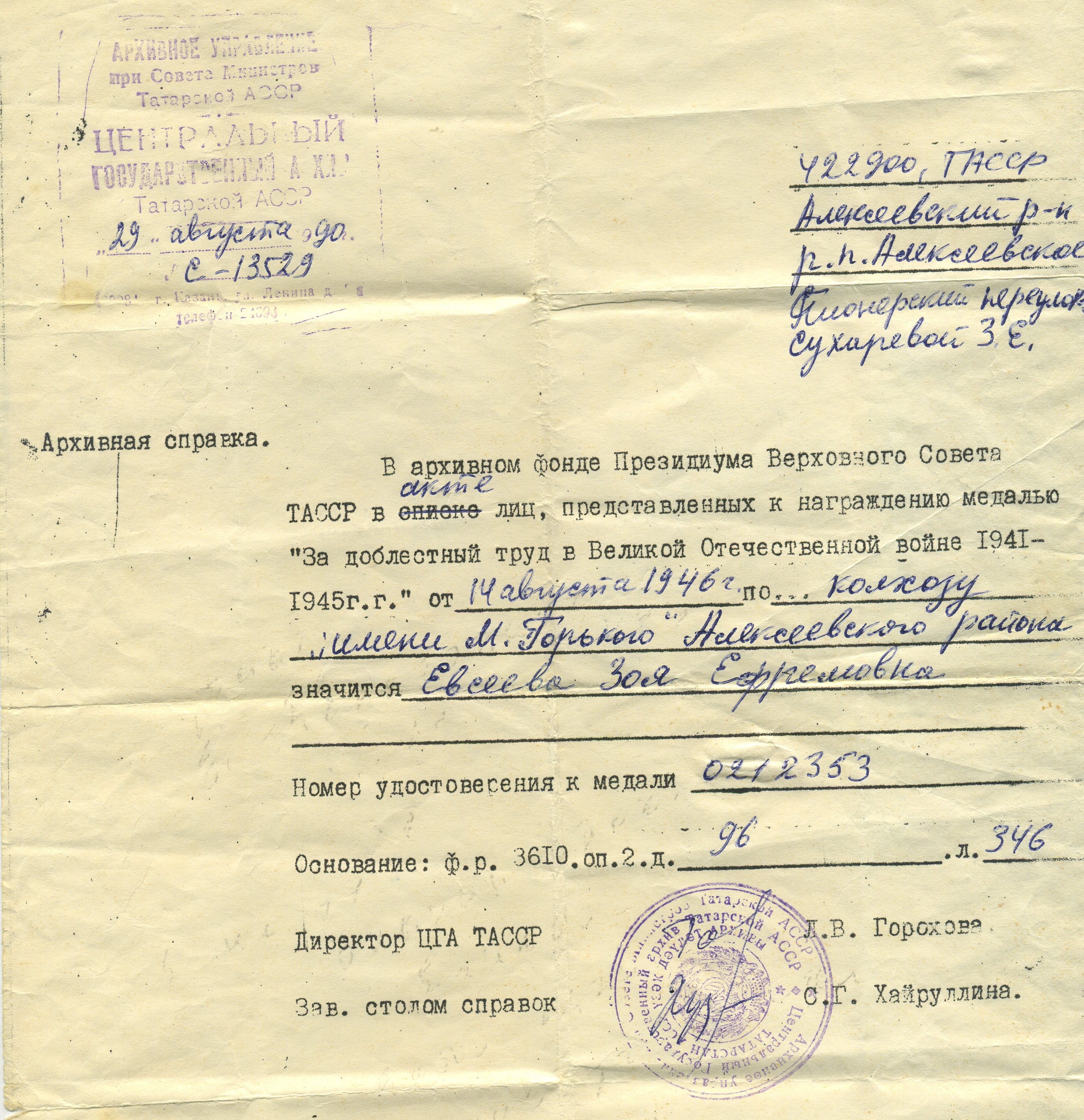 СУХАРЕВА (ЕВСЕЕВА) ЗОЯ ЕФРЕМОВНА