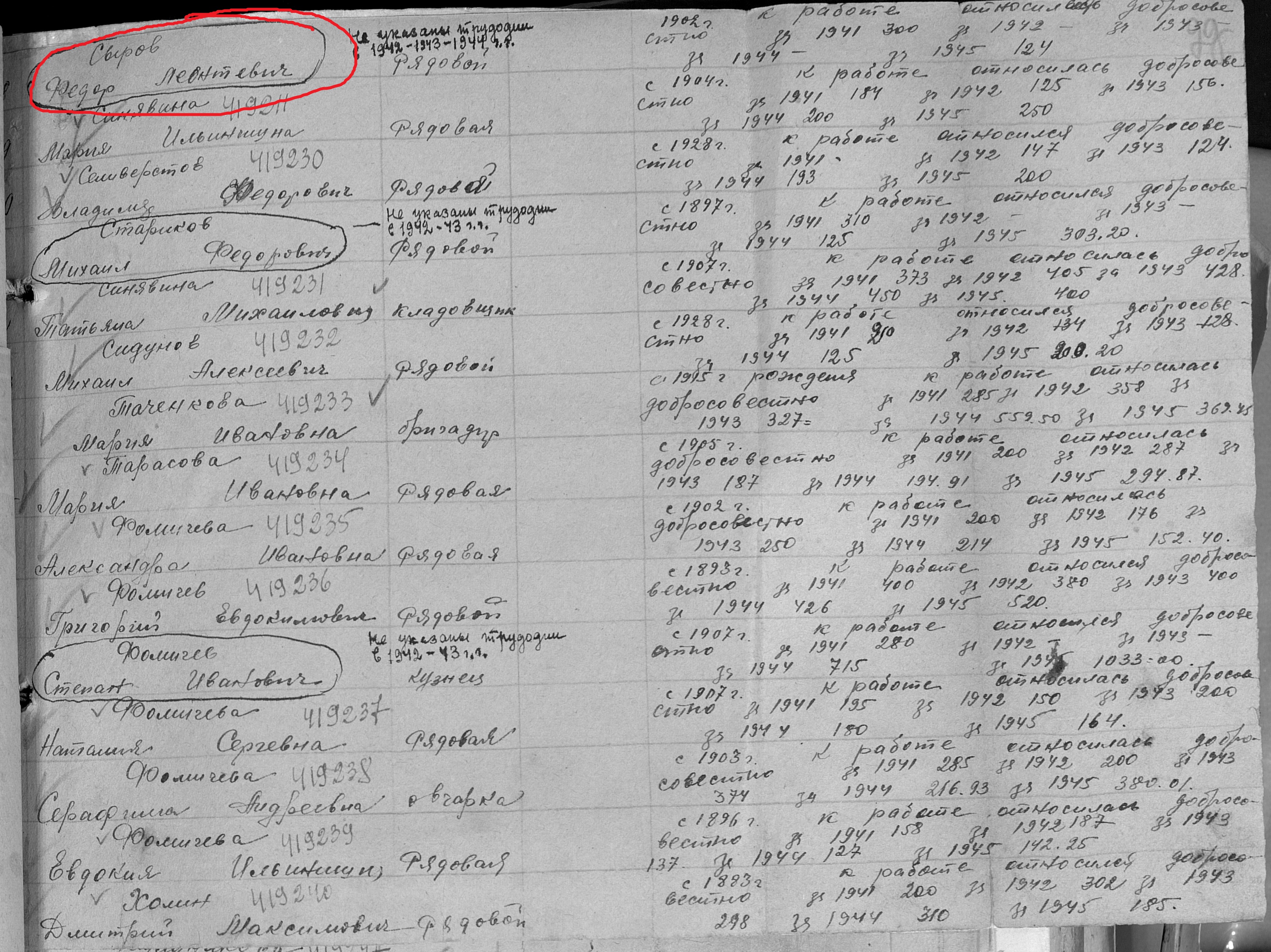 Сыров Федор Леонтьевич родился в 1902 году в с.Новошешминск Казанской губернии Чистопольского уезда Новошешминской волости. В годы Великой Отечественной войны работал в колхозе им.Молотова рядовым колхозником. Награжден медалью "За доблестный труд в Великой Отечественной войне 1941–1945 гг." (Акт от 28 апреля 1947 г, фонд 3610, опись 2, дело № 325, лист 29).