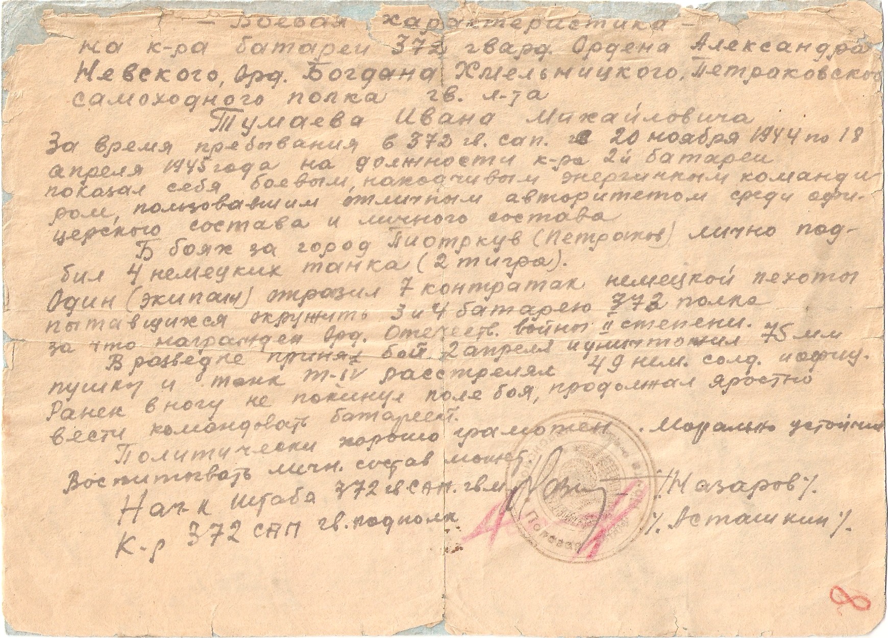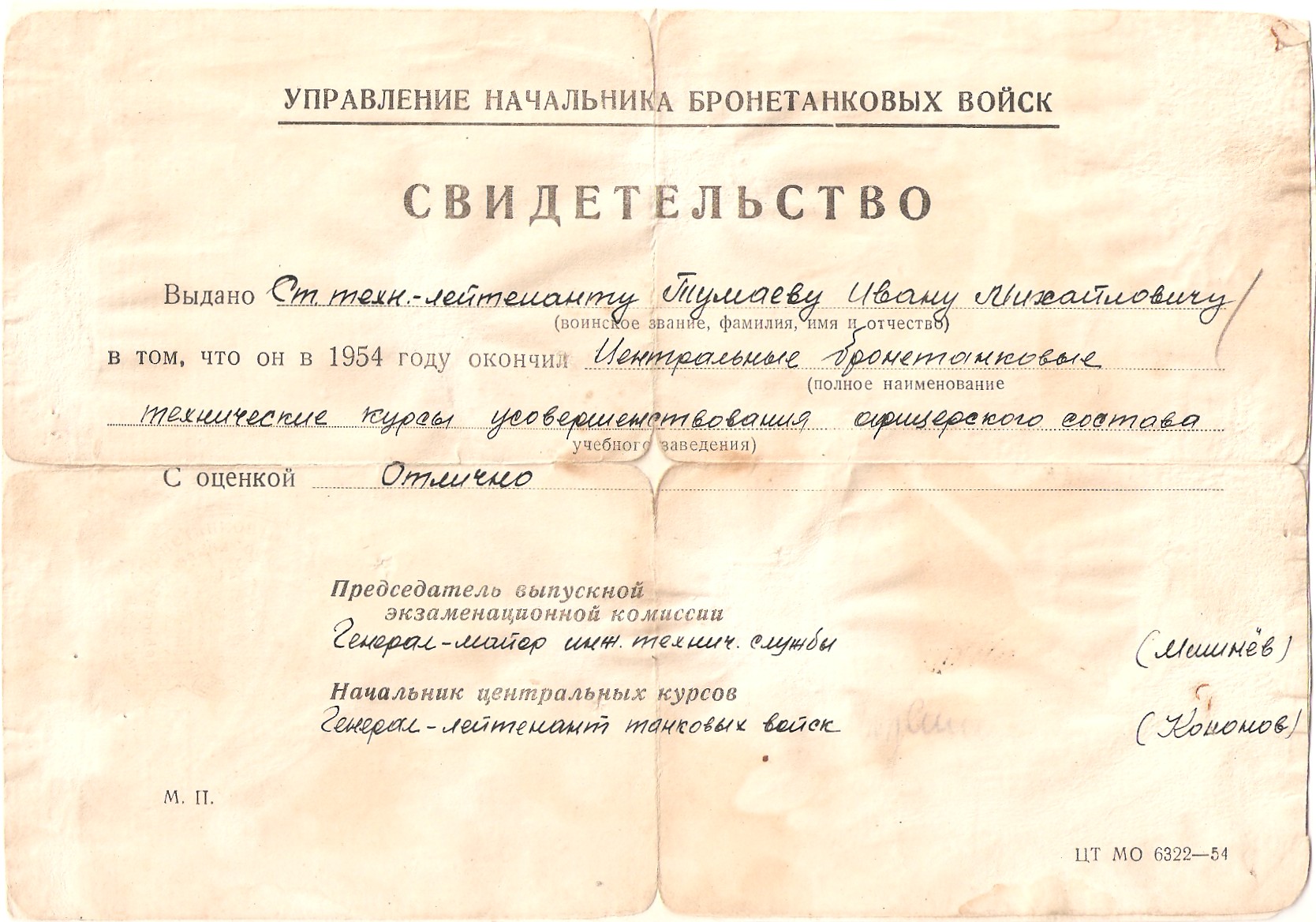 PS. После войны подполковник запаса Тумаев И.М. жил в Одесской обл. г. Измаил. Узнав о создании в Лениногорске музея, отправил сюда, на свою малую Родину свои документы, в том числе и комсомольский билет выданный Шугуровским райкомом комсомола в 1939 году.