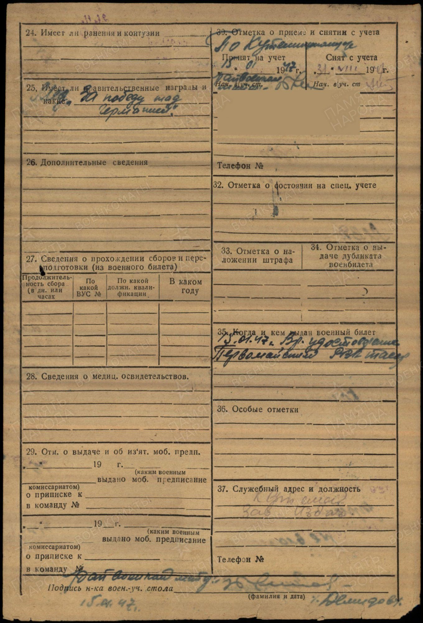 МВД). Где служил до 01.1947г. 15.01.1947г. вернулся на родину.
