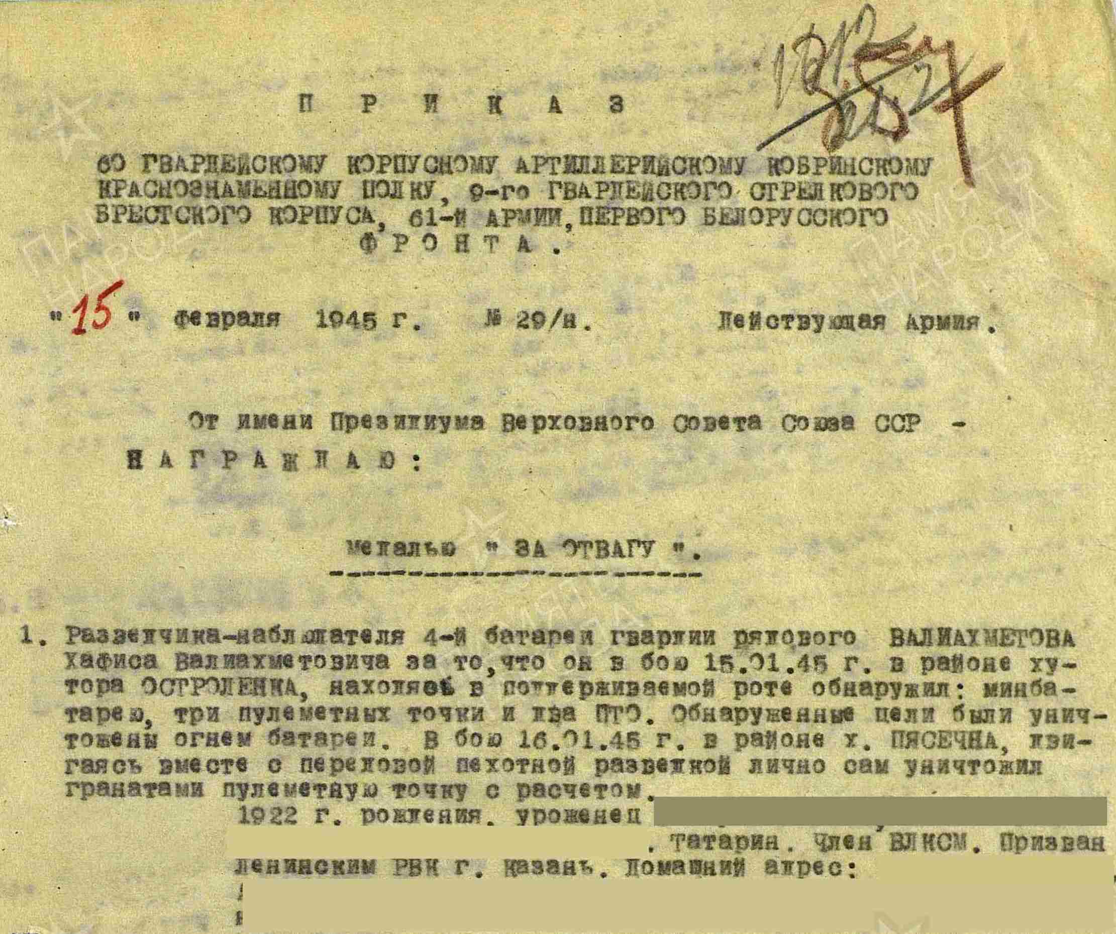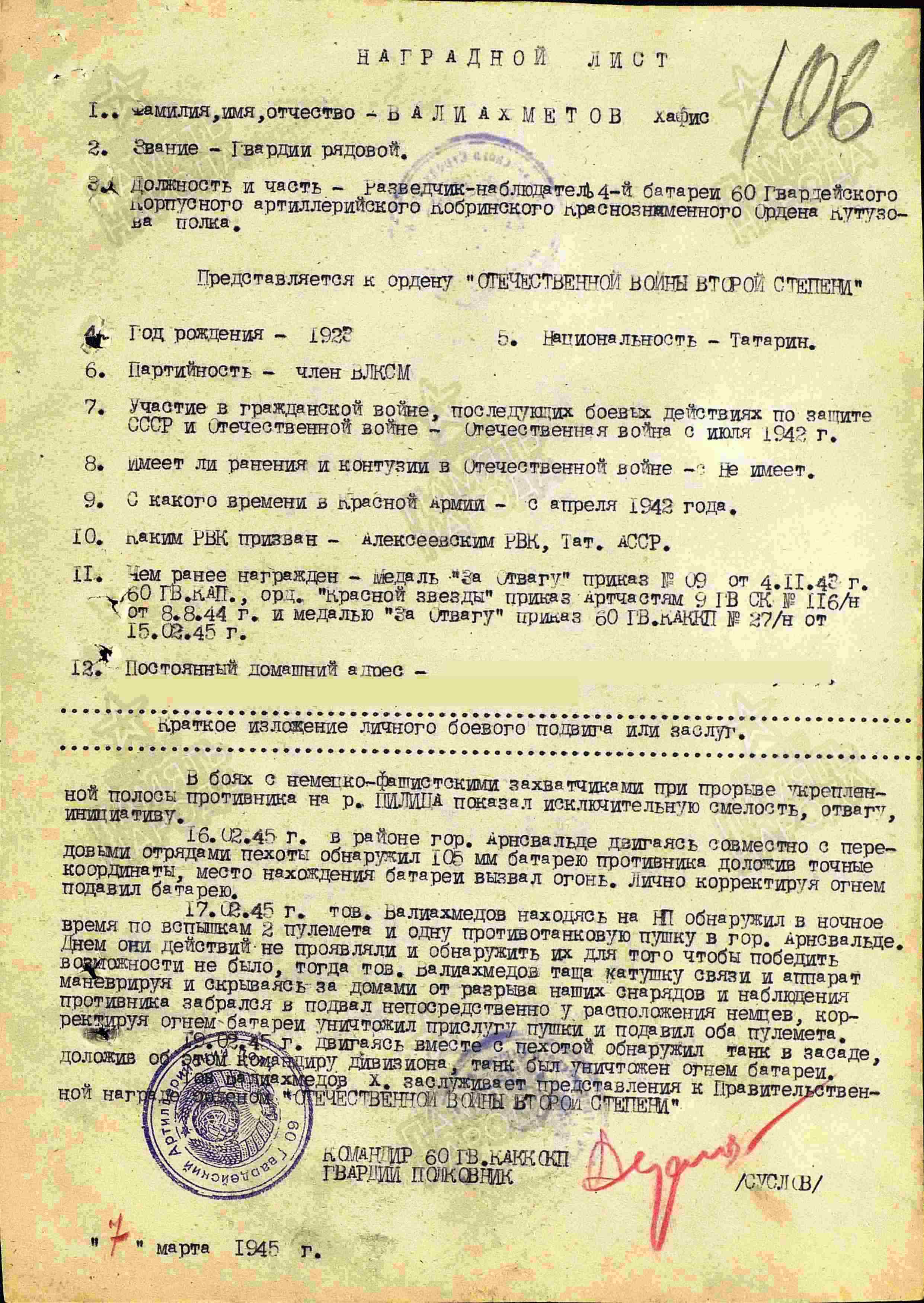 ВАЛИАХМЕТОВ Хафис Валиахметович, 1922, с. Степная Шентала. Мобилизован 23 апр. 1942 Алексеевским РВК. В боях с июля 1942. Гв. красноармеец, разведчик-наблюдатель 60 гв. корпусного АП 9 гв. СК 61 А Западного, Брянского, Центрального, Белорусского, 2/1 Белорусского, 3/1 Прибалтийского фронта. Награждён двумя медалями «За отвагу», орденами Красной Звезды, Отечественной войны 2 ст. Погиб 9 марта 1945, м. Хохенкрук, шоссе Штаргардт-Штеттин, Померания, Германия.