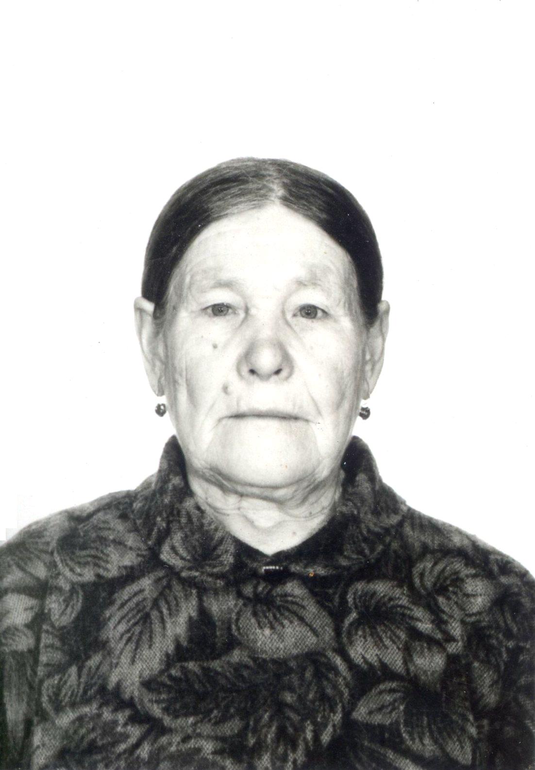 Труженица тыла. В годы Великой Отечественной войны с 1941 года и по 1955 года работала в колхозе «Звезда» разнорабочей. С 1955 года и до выхода на пенсию в 1991 году работала в колхозе им.Чапаева дояркой, уборщицей. Ветеран труда. Вдова участника Великой Отечественной войны. Родила и воспитала 6-ых детей.