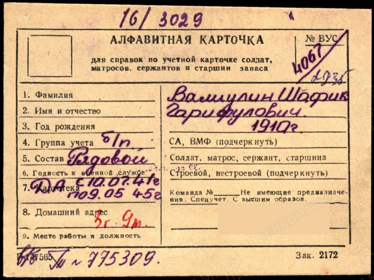 Родился 1910 г. в с. Новый Иштиряк, ныне Лениногорский район РТ. До войны колхозник.