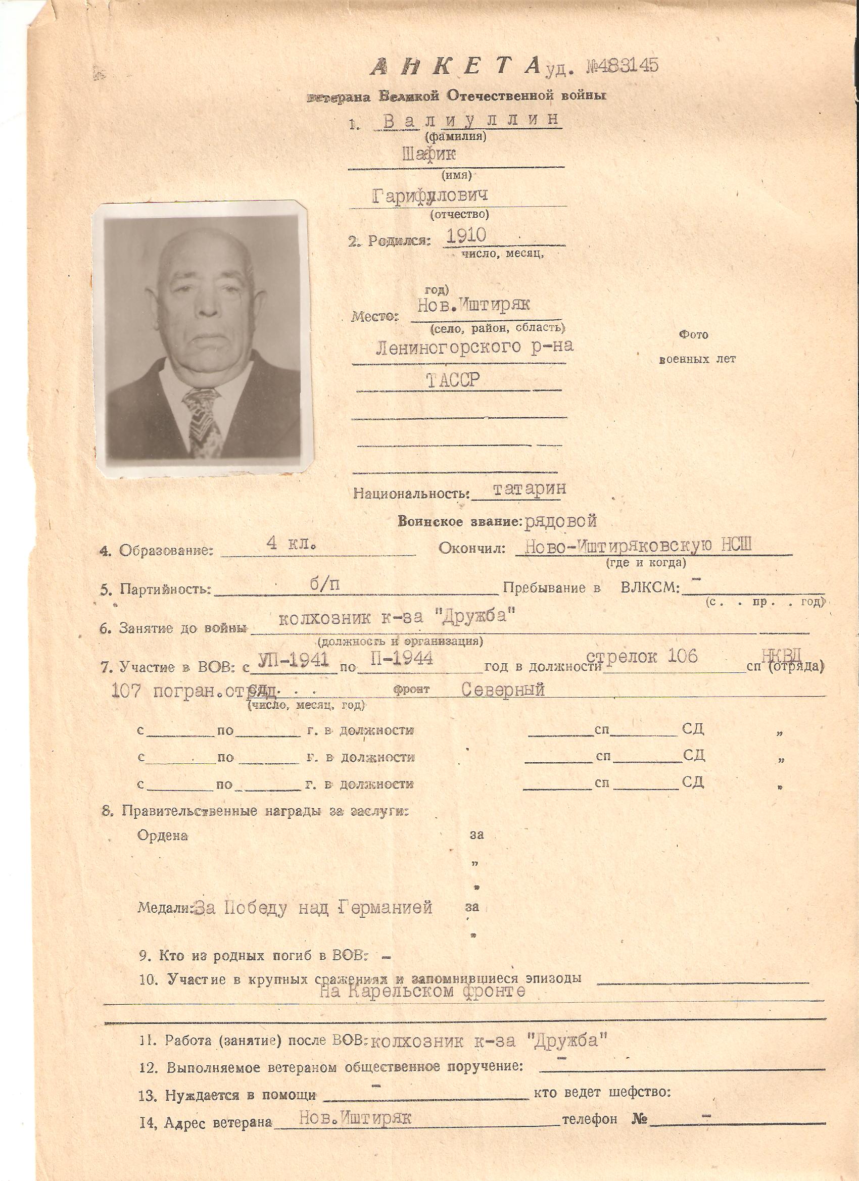ВАЛИУЛЛИН ШАФИК ГАРИФУЛЛОВИЧ