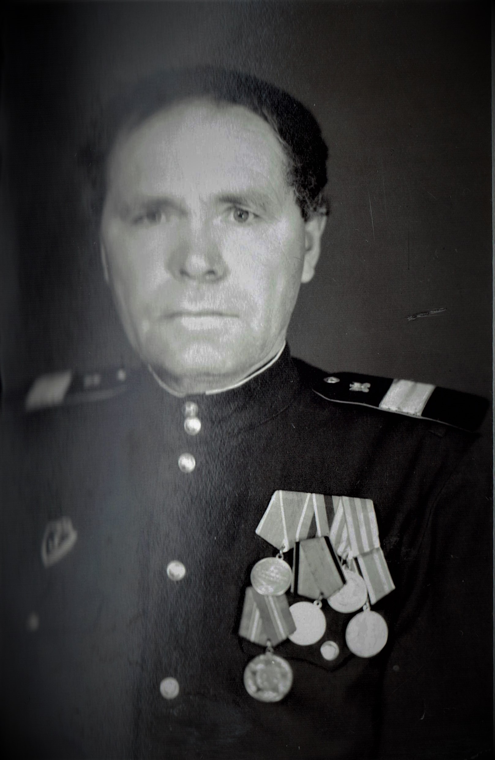 «Призван в армию был в январе 1942 года в Москве, в Зенитную артиллерию, орудием номером 85 мм пушки. Наша 53-я зенитная дивизия находилась в г. Химки, которая защищала своим огнем зенитных орудий Москву от налета фашистских самолетов. Когда фашистов отогнали от Москвы, нас отправили на 3-й Украинский фронт, где участвовали в дальнейшем освобождении от фашистских захватчиков Румынии - наша часть освобождала город Плоешти. После Румынии мы перешли к изгнанию фашистов из Венгрии и освобождали столицу Будапешт. Особо сильные бои происходили у озера Балатон, где я получил ранение и контузию. В Венгрии же наш 993 ордена Богдана Хмельницкого полк вел сильные бои за город Сики-Вер (?), который 3 раза переходил из рук в руки. После Венгрии наш полк участвовал в освобождении Австрии, где мы последний раз освободили город Грасс, после чего и застали конец войны.