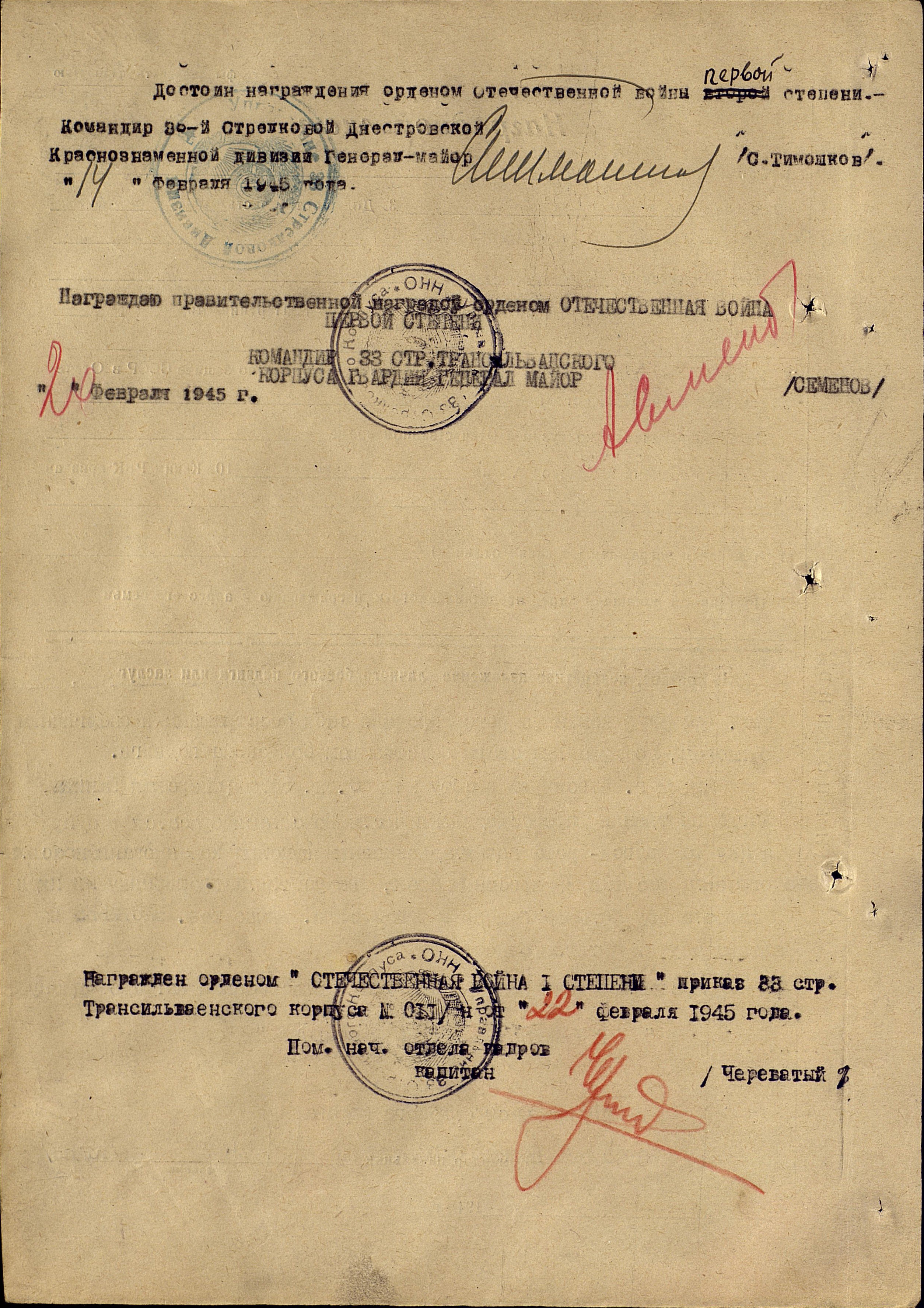 ВАСИЛЬЕВ Григорий Абрамович, 1918, с. Крещёный Баран. Мобилизован в РККА Билярским РВК в 1939 г. Старший лейтенант, командир стрелковой роты 1142 СП 340 СД, командир стрелковой роты 29 СП 38 СД. Был ранен пять раз. Воевал на Южном, Воронежском, 1 и 2 Укр. фронтах. Награждён орденами Красной Звезды (дважды), Отечественной войны 1 ст. дважды (февраль 1945 г. и 1985 г.). В отставку вышел в звании капитана. После войны работал председателем сель.совета в с. Кр. Баран. Умер в 2005 г., похоронен в с. Большие Полянки.