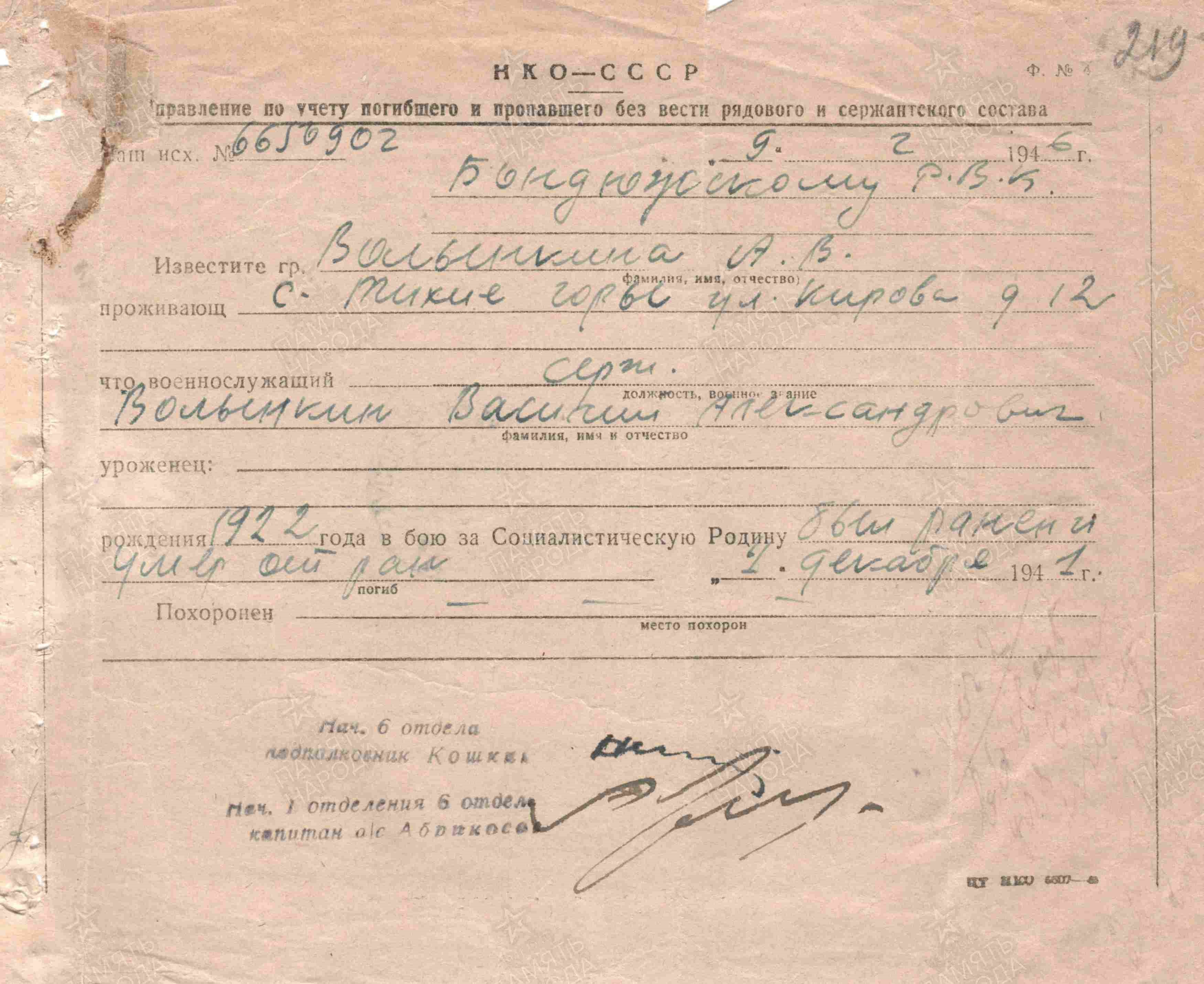 ВОЛЫНКИН ВАСИЛИЙ АЛЕКСАНДРОВИЧ