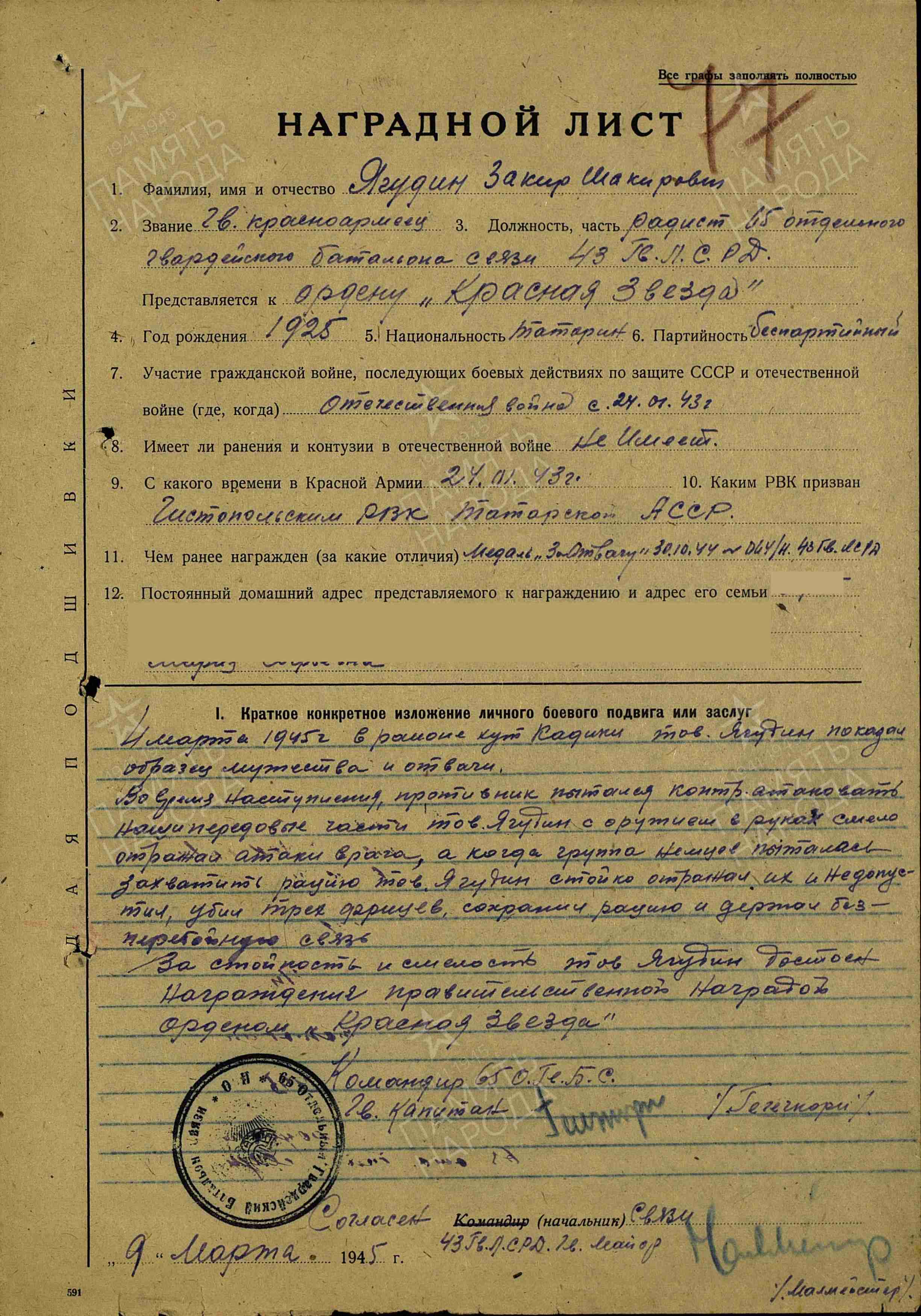 Закир Шакирович родился 6 мая 1925 г. в Чистополе, ТАССР. 24 января 1943 года призван в ряды Красной Армии Чистопольским РВК Татарской АССР. Служил в звании Гвардии красноармеец в должности радист65 отдельного гвардейского батальона связи 43ГВ.Л.С.РД.