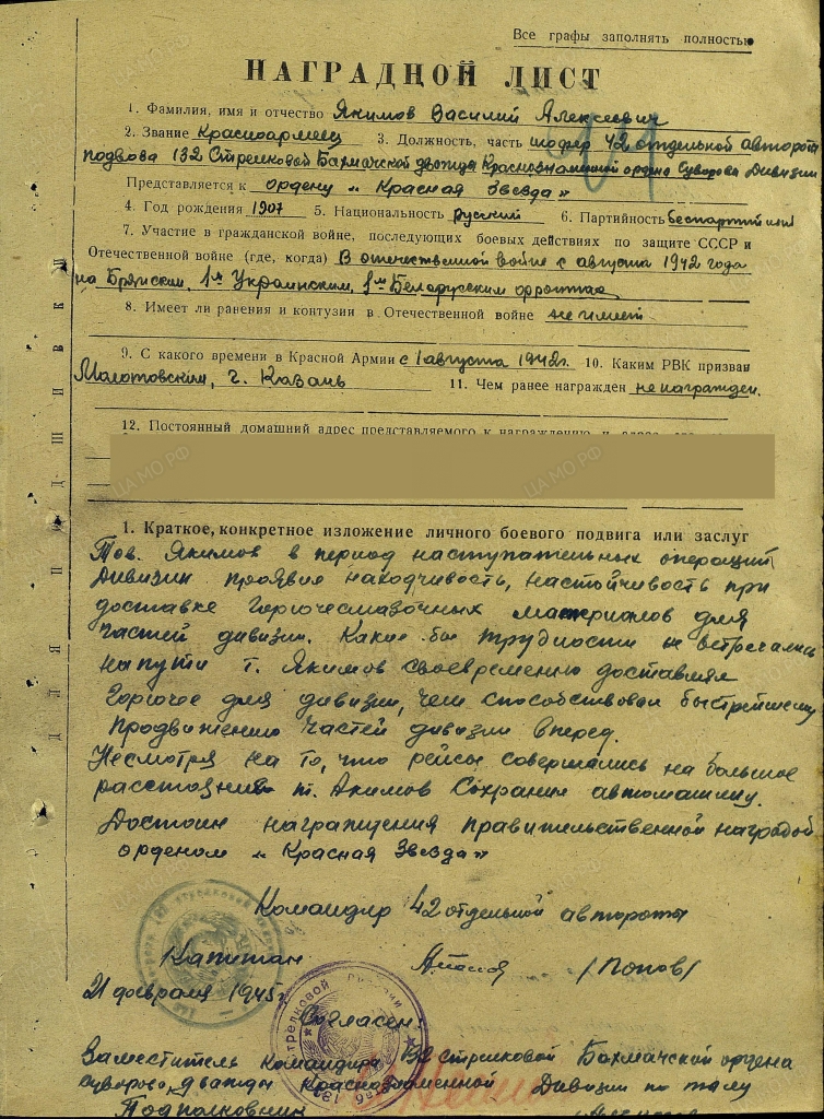 Умер от ран 07.08.1945 г., 223 медсанбат 132 стрелковой дивизии.