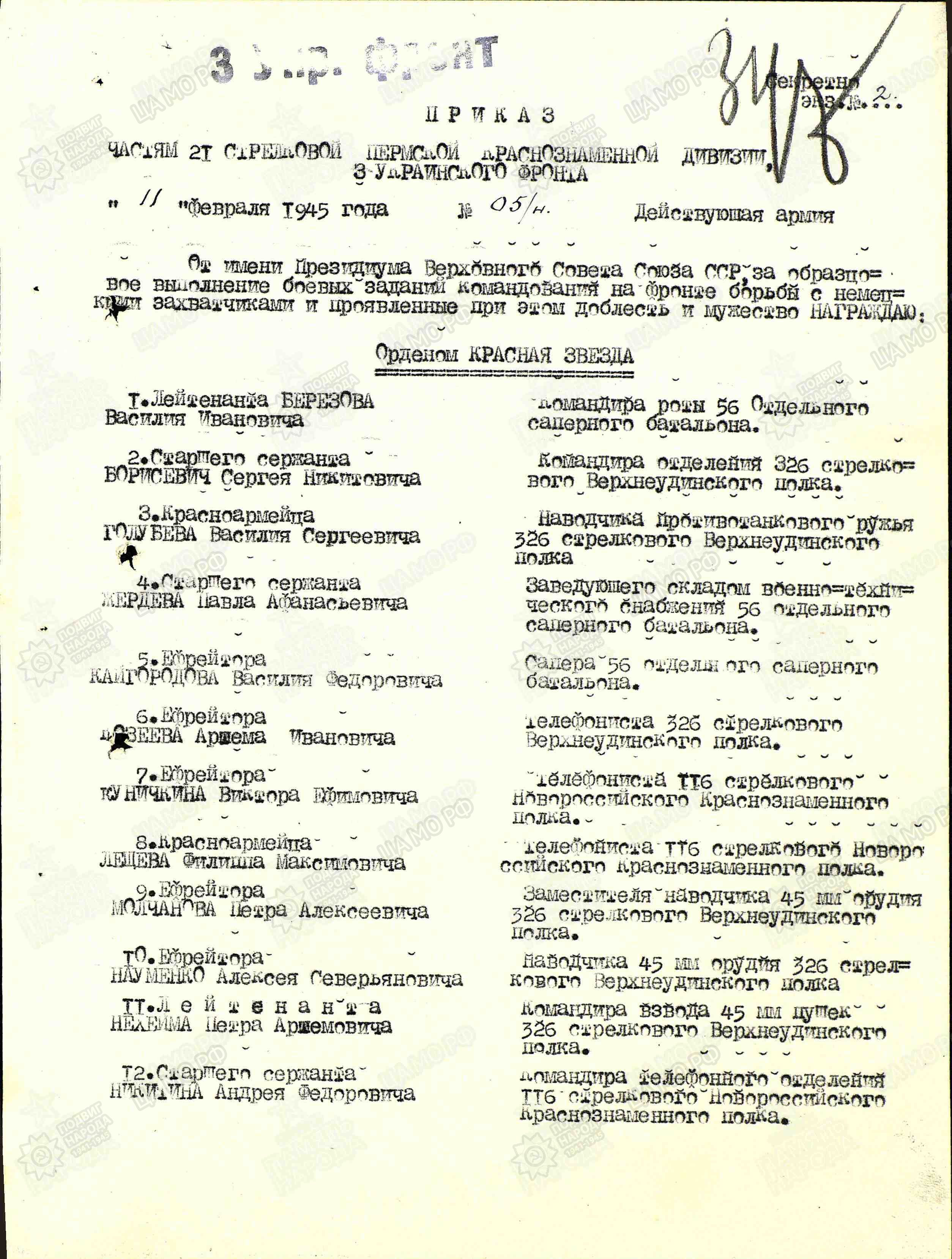 Младший сержант Яковлев Н.Н. был командиром отделения 326 стрелкового Верхнеудинского полка 21 Стрелковой Пермской Краснознаменной дивизии.