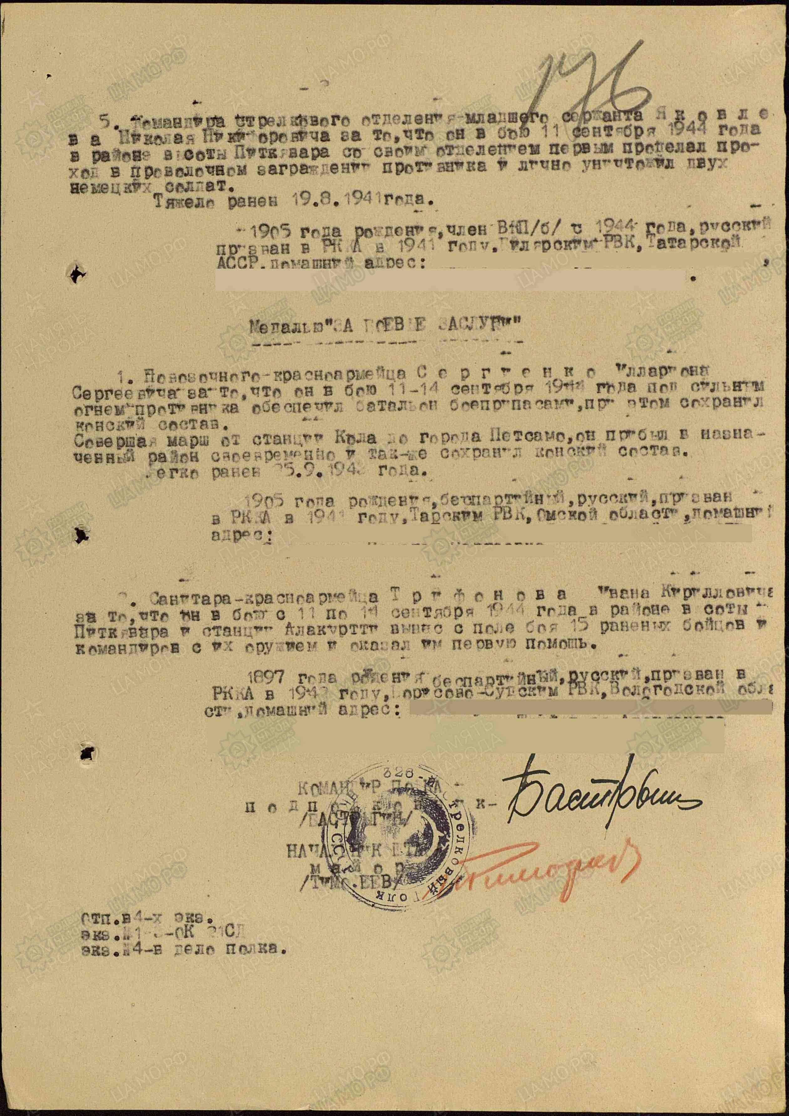За отличные боевые действия тов. Яковлев достоин награждения орденом «Славы третьей степени».