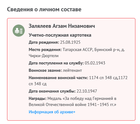 Моб. в 1943г., 1172 сп,348 сд, ст-на, демоб. в 1947 г.