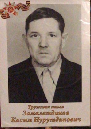 Замалетдинов Касым Нурутдинович труженник тыла. в 1943г. пришел из фзо 14 летним парнишкой работать на завод ГАРО. Очень хотел пойти на фронт, но его не взяли. Точил гильзы для снарядов, работал по 10 час в день. Ночевали в то время там же, на рабочем месте. После войны так и остался работать на заводе. В общей сложности проработал там 44 года.
