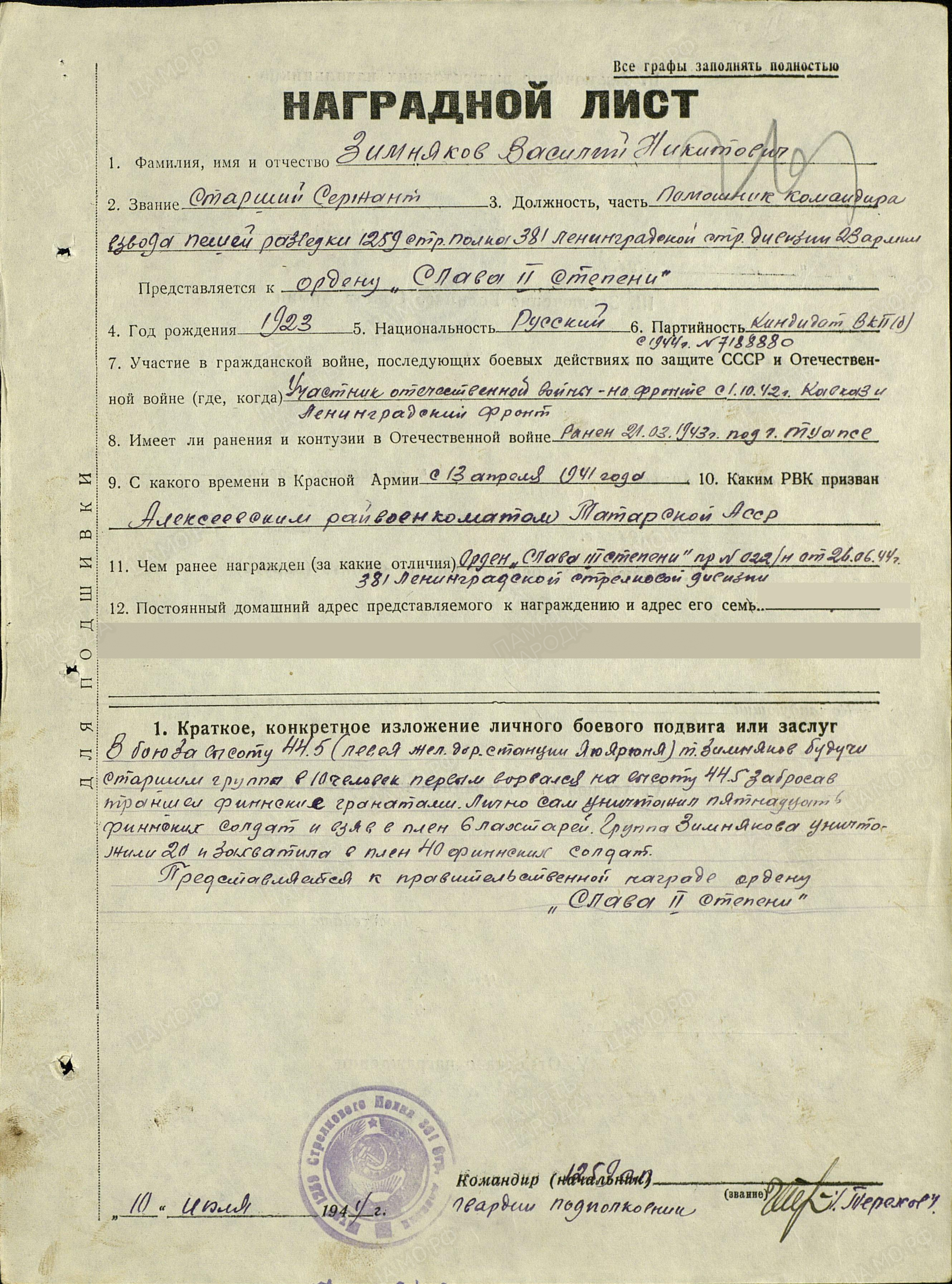 ЗИМНЯКОВ ВАСИЛИЙ НИКИТОВИЧ